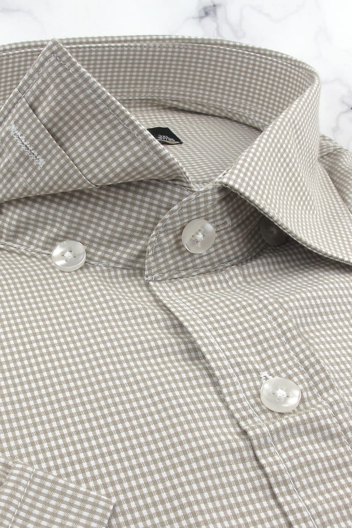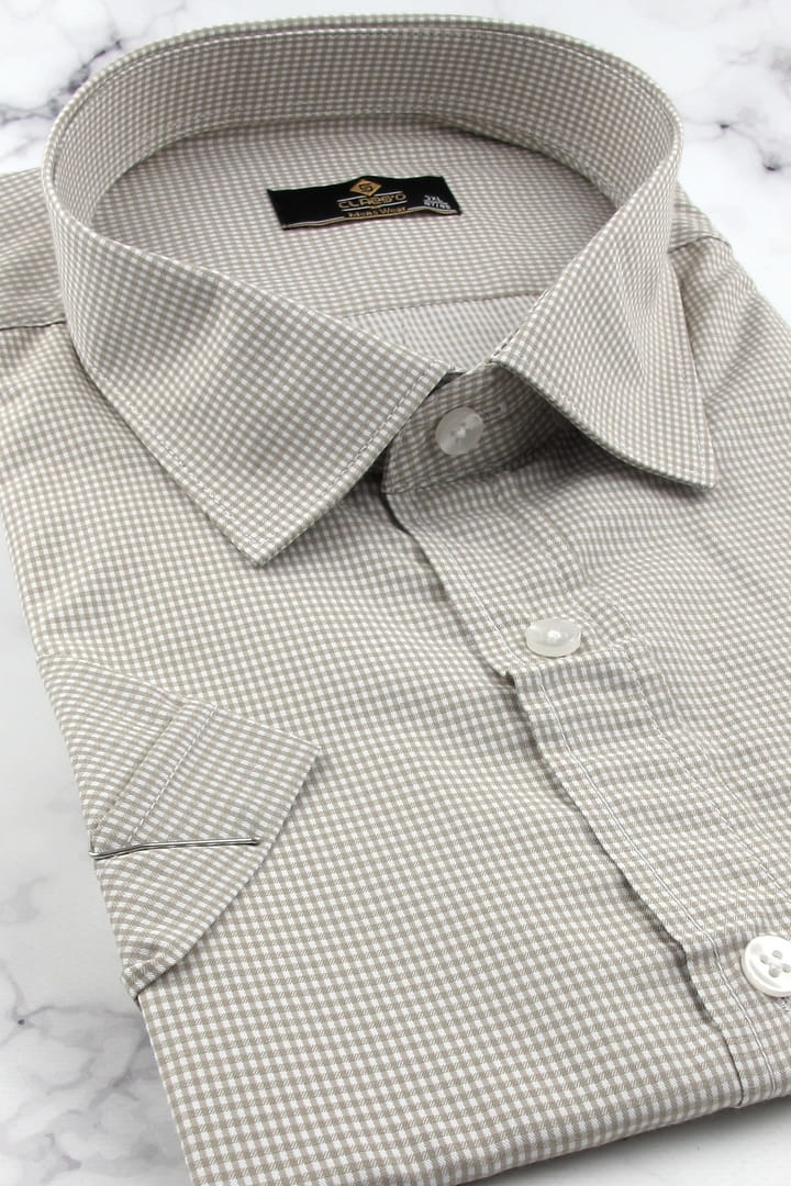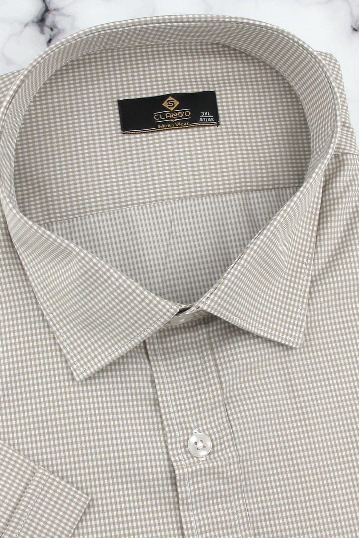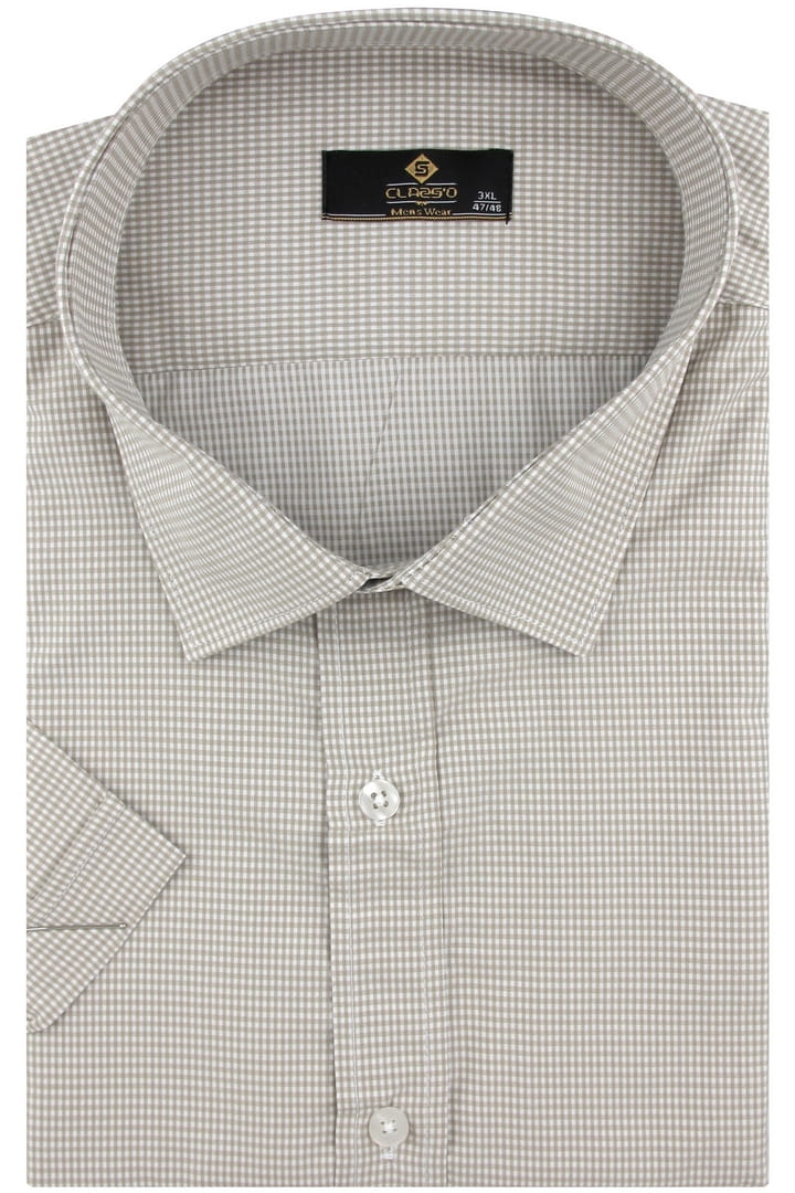 Duża Koszula Męska Codzienna Bawełniana Casual beżowa w kratkę z krótkim rękawem Duże rozmiary Classo R066