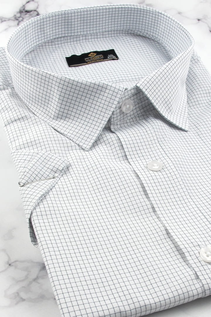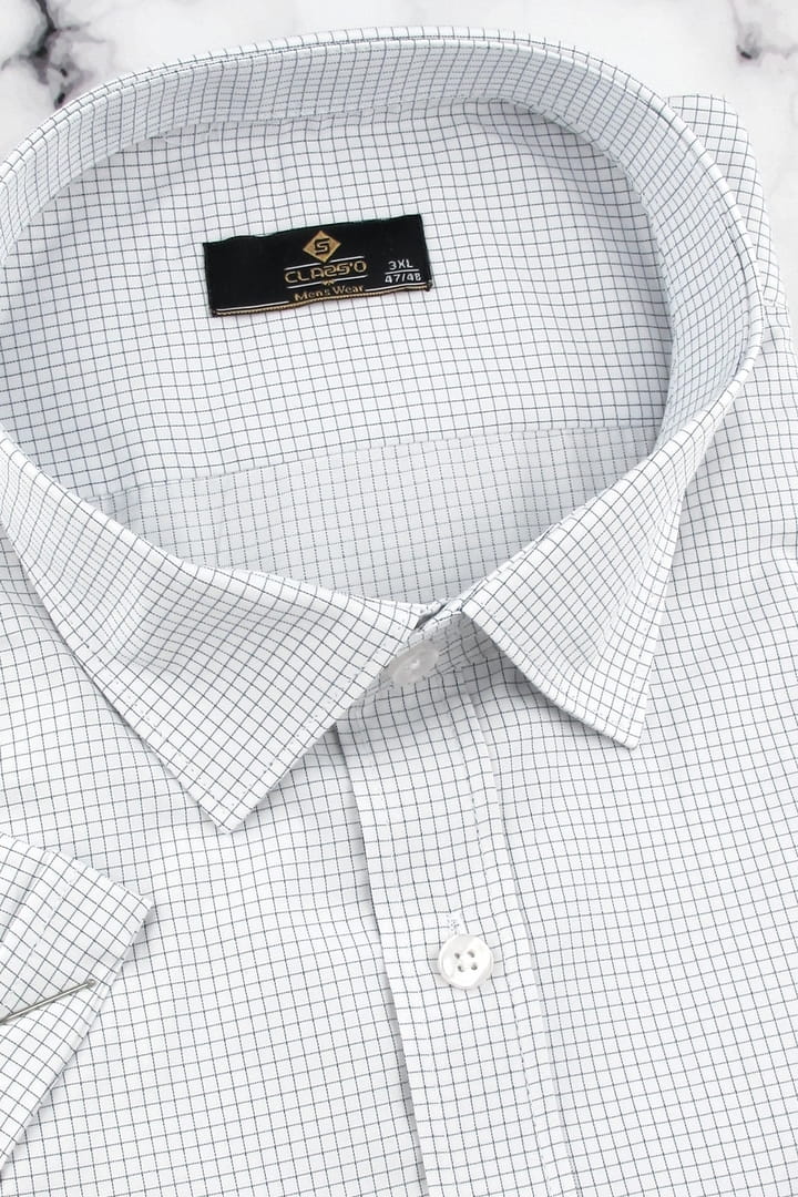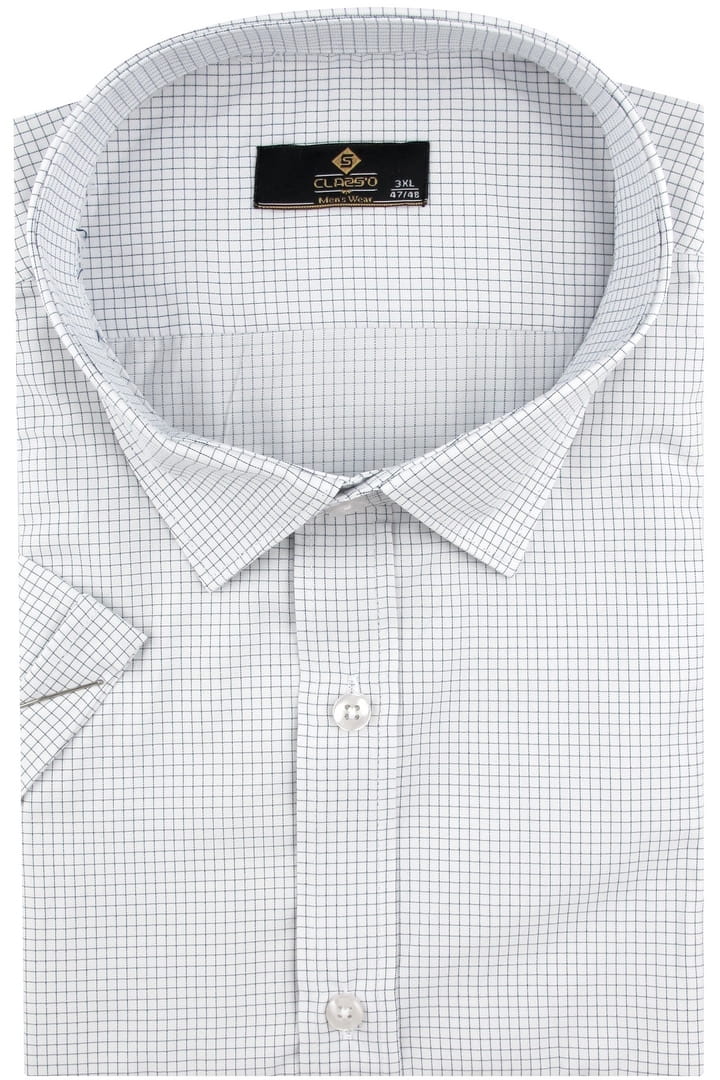 Duża Koszula Męska Codzienna Bawełniana Casual biała w kratkę z krótkim rękawem Duże rozmiary Classo R069