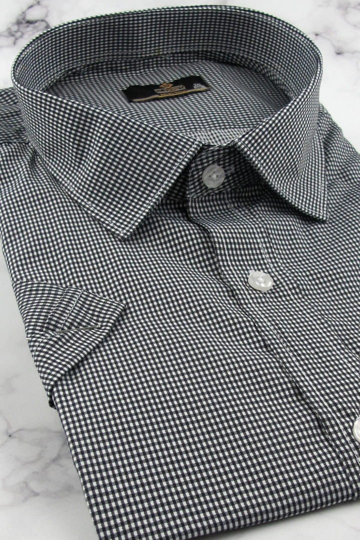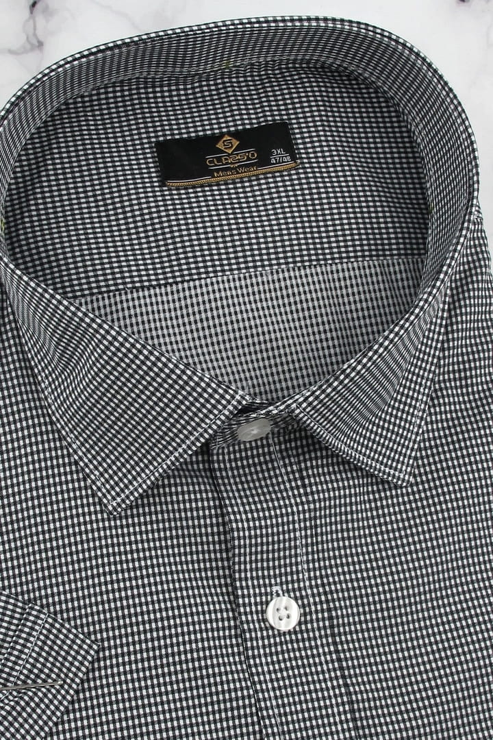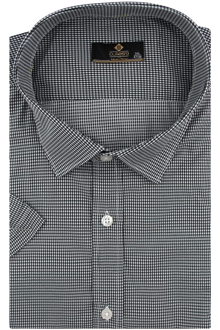 Duża Koszula Męska Codzienna Bawełniana Casual czarna w kratkę z krótkim rękawem Duże rozmiary Classo R065