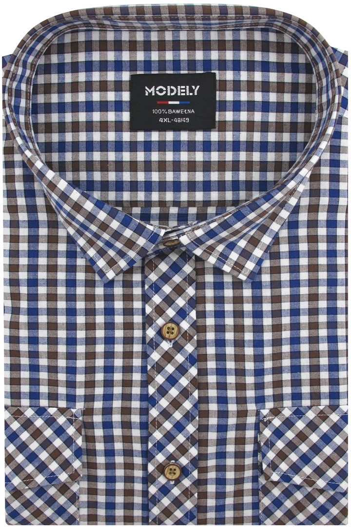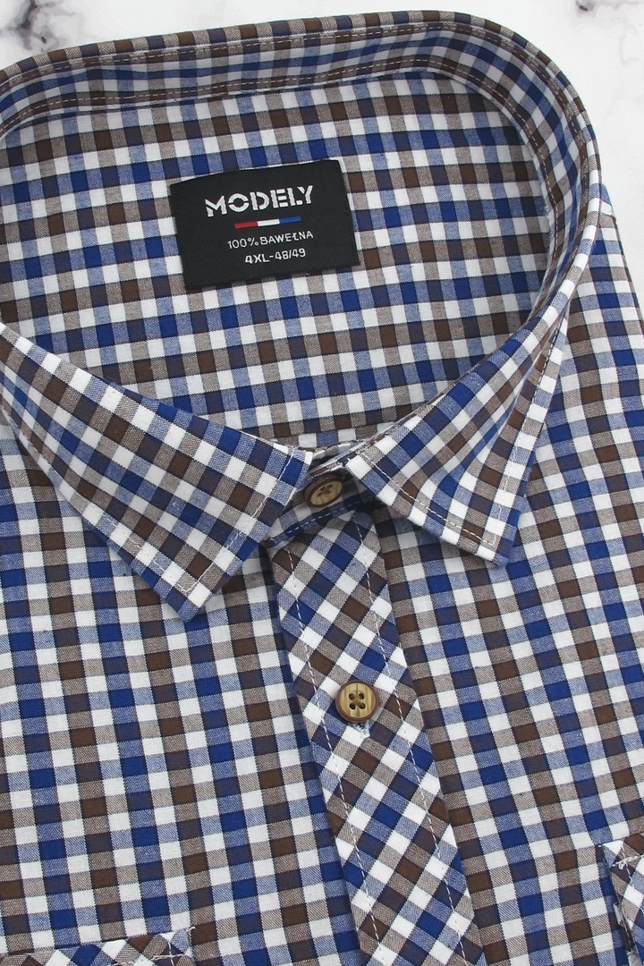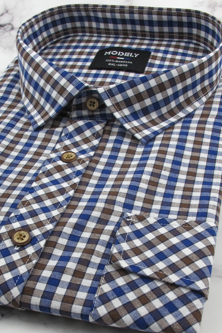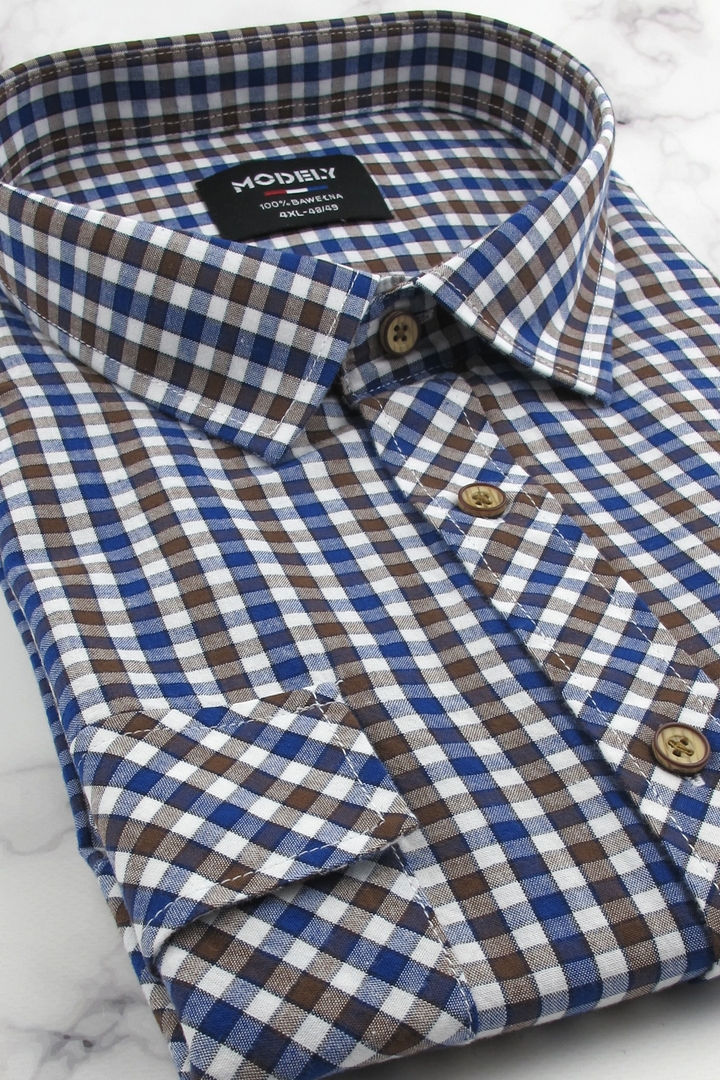 Duża Koszula Męska Codzienna Casual brązowa w kratkę z długim rękawem Duże rozmiary J664