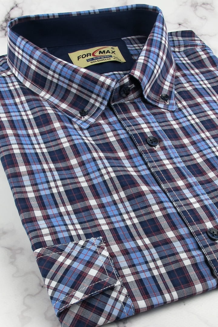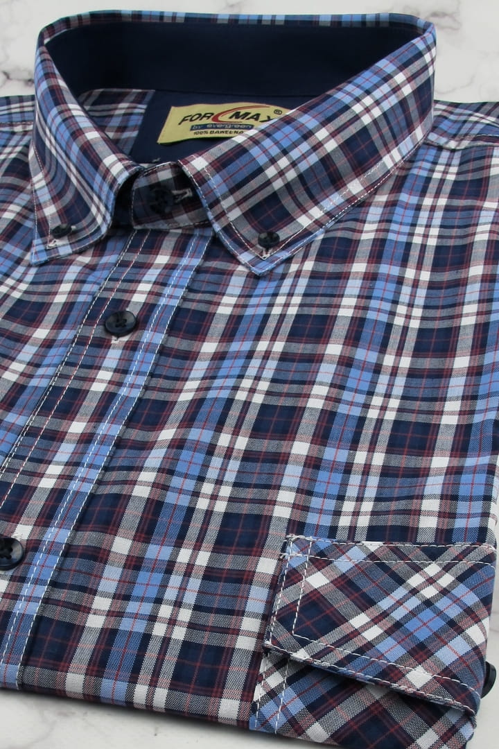 Duża Koszula Męska Codzienna Casual granatowa w kratę z długim rękawem Duże rozmiary Formax H817