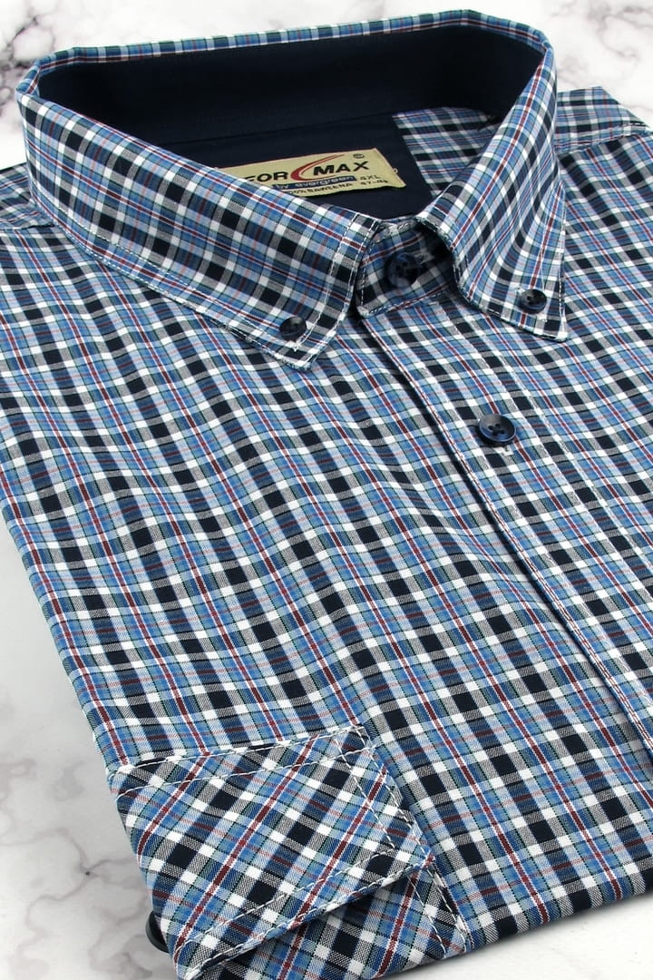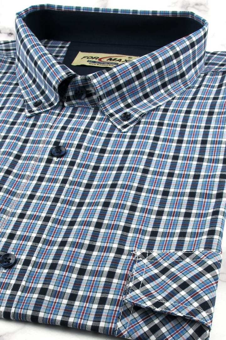 Duża Koszula Męska Codzienna Casual niebieska w kratę z długim rękawem Duże rozmiary Formax H818