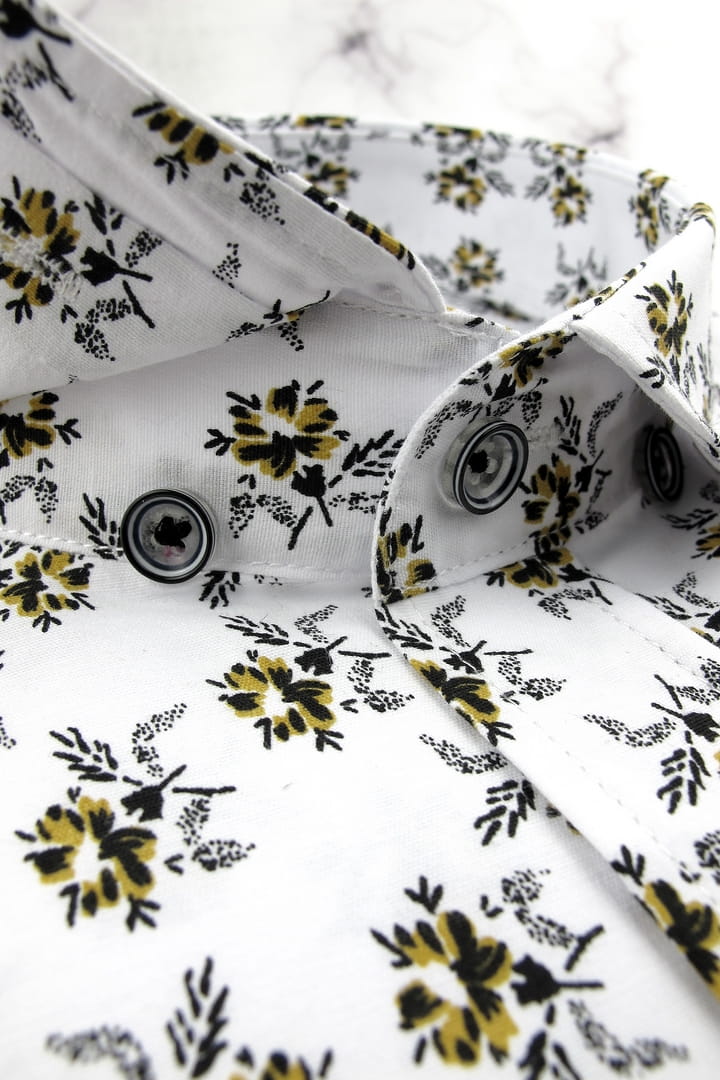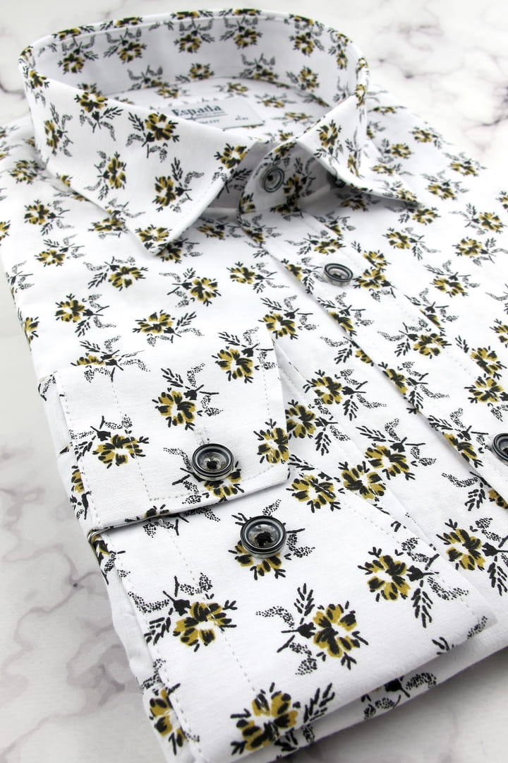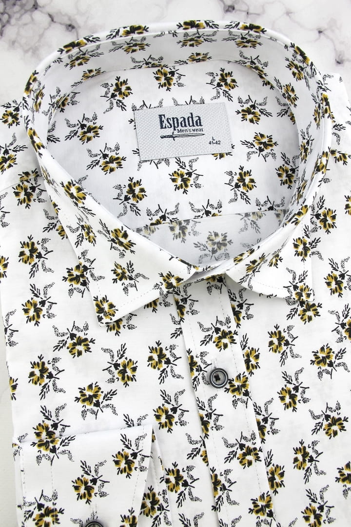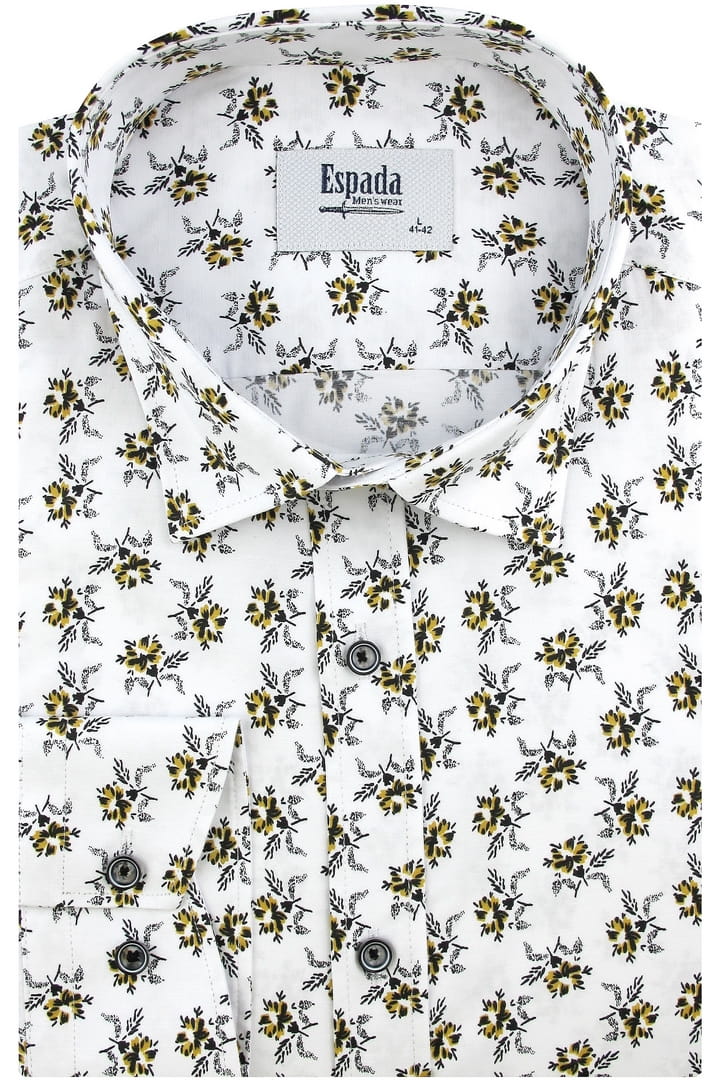 Duża Koszula Męska Elegancka Wizytowa do garnituru biała w kwiatki z długim rękawem Duże rozmiary Espada Men's Wear H758