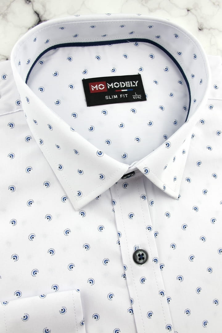 Duża Koszula Męska Elegancka Wizytowa do garnituru biała we wzorki z długim rękawem Duże rozmiary H295