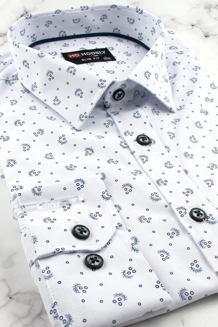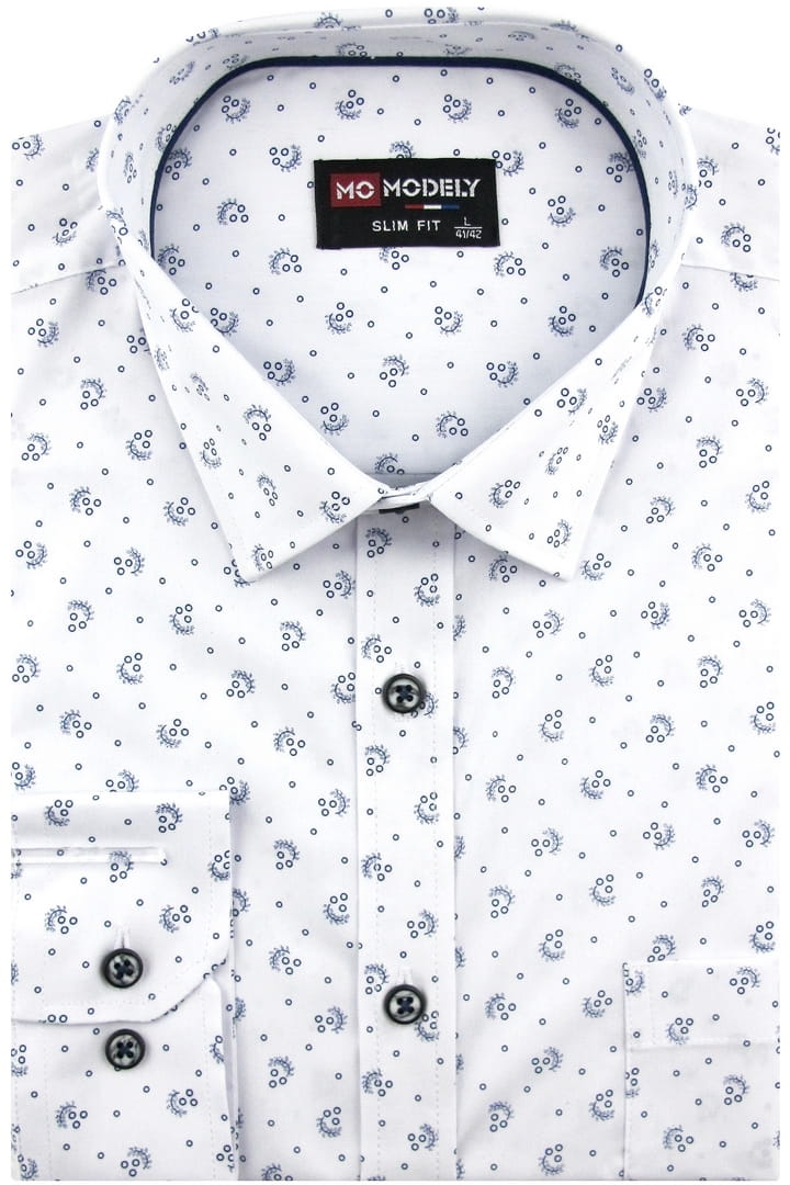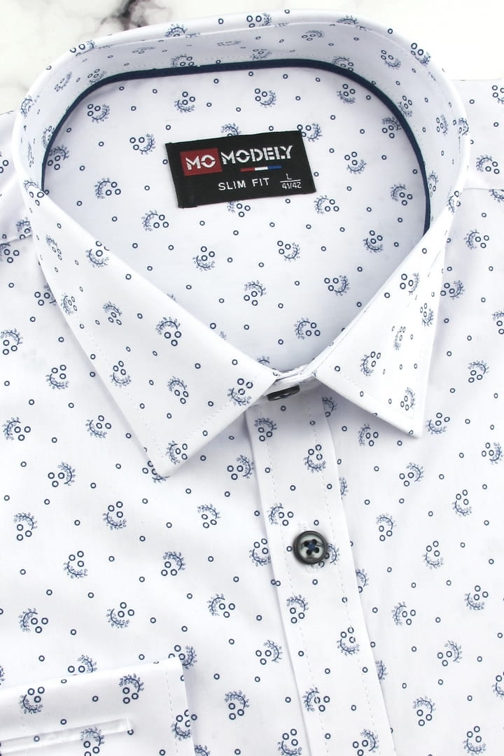 Duża Koszula Męska Elegancka Wizytowa do garnituru biała we wzorki z długim rękawem Duże rozmiary H297