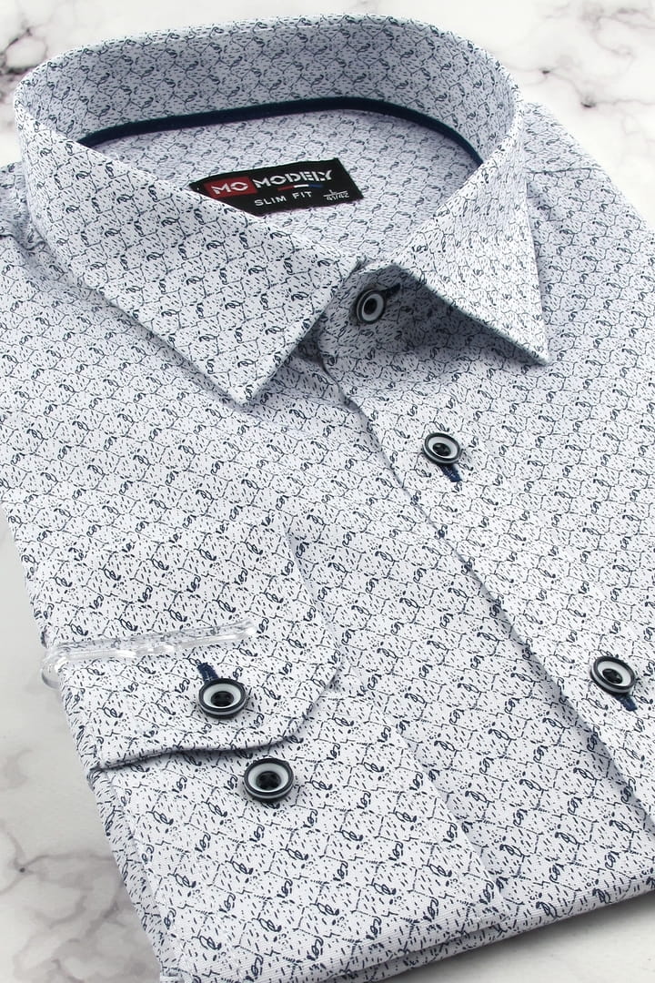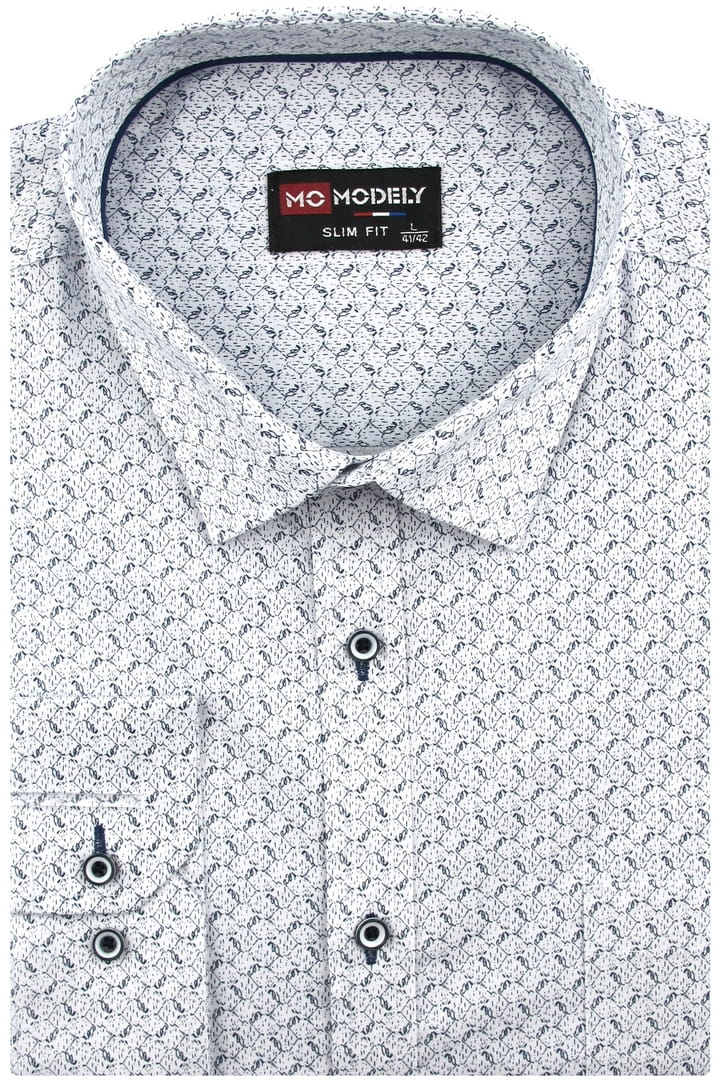 Duża Koszula Męska Elegancka Wizytowa do garnituru biała we wzorki z długim rękawem Duże rozmiary J734