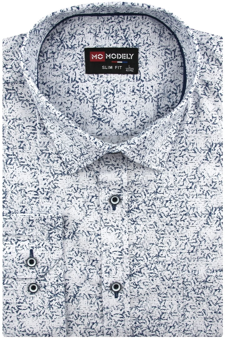 Duża Koszula Męska Elegancka Wizytowa do garnituru biała we wzorki z długim rękawem Duże rozmiary J735