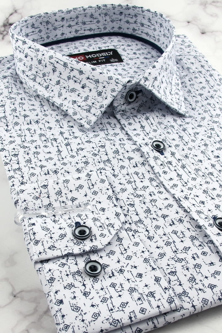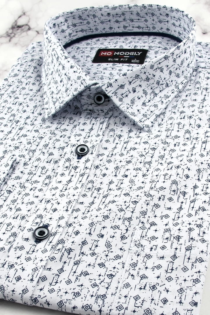 Duża Koszula Męska Elegancka Wizytowa do garnituru biała we wzorki z długim rękawem Duże rozmiary J737