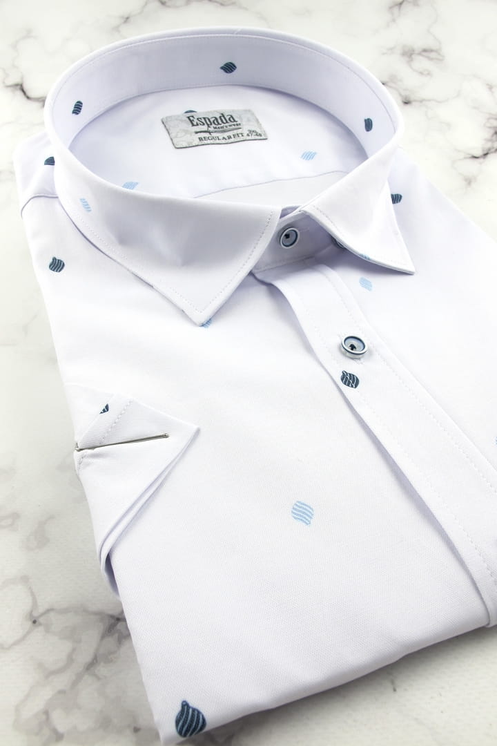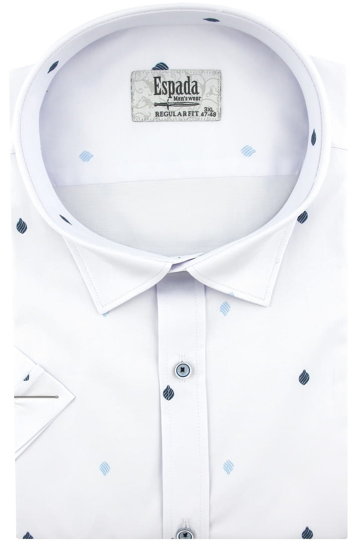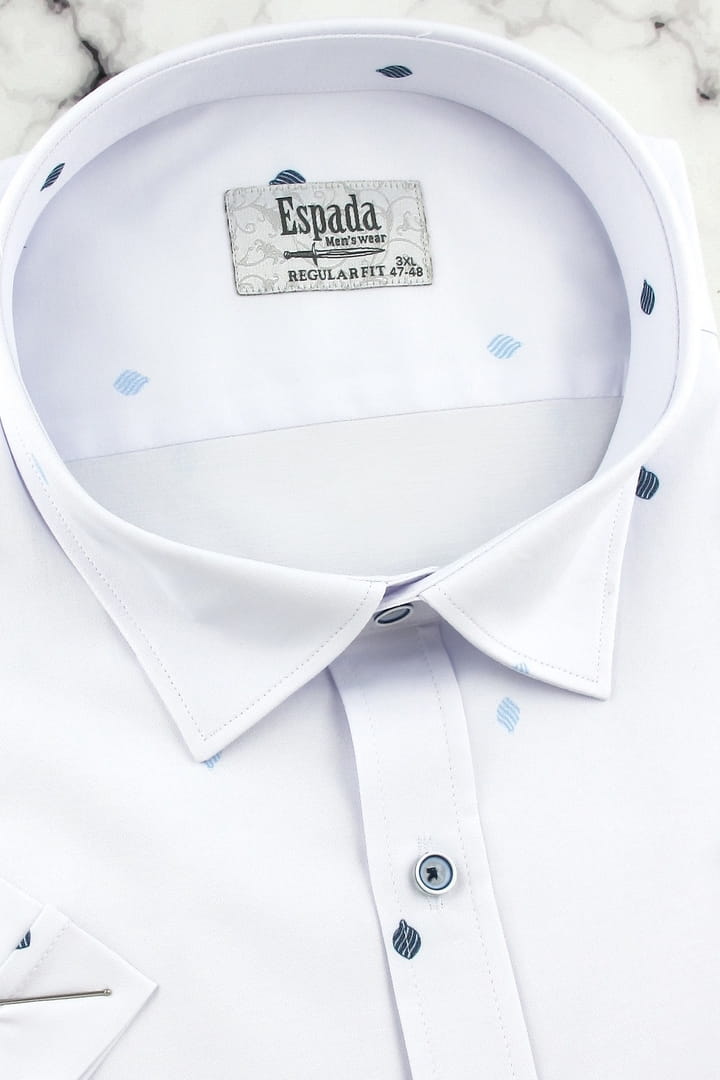 Duża Koszula Męska Elegancka Wizytowa do garnituru biała we wzorki z krótkim rękawem Duże rozmiary Espada Men's Wear P726