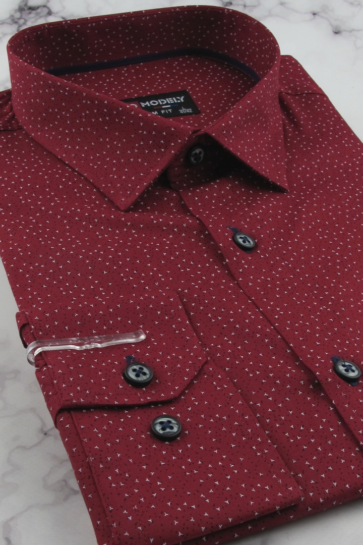 Duża Koszula Męska Elegancka Wizytowa do garnituru czerwona we wzorki z długim rękawem Duże rozmiary J728