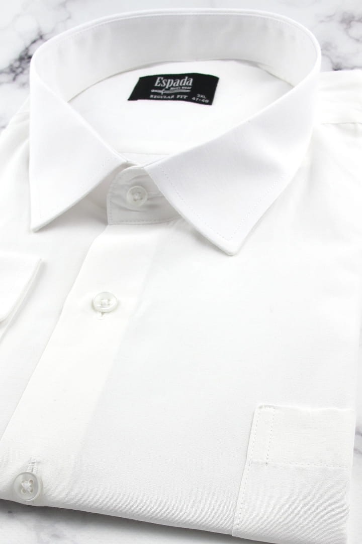 Duża Koszula Męska Elegancka Wizytowa do garnituru gładka biała z długim rękawem Duże rozmiary Espada Men's Wear J308
