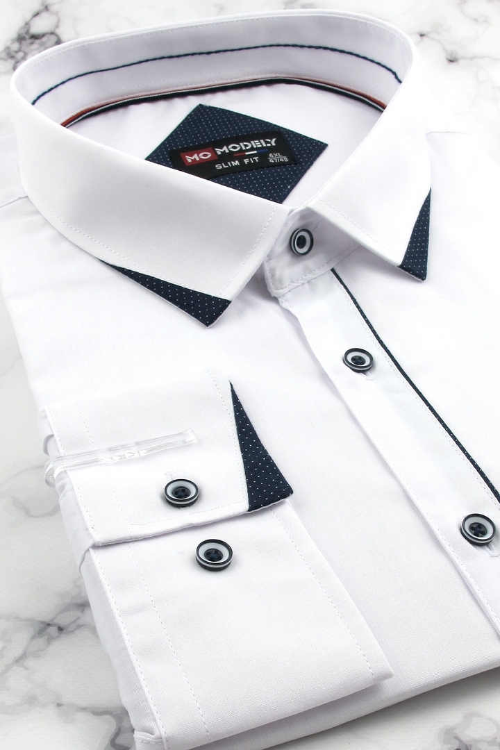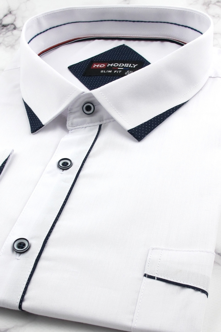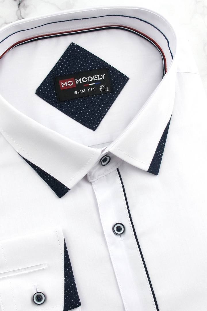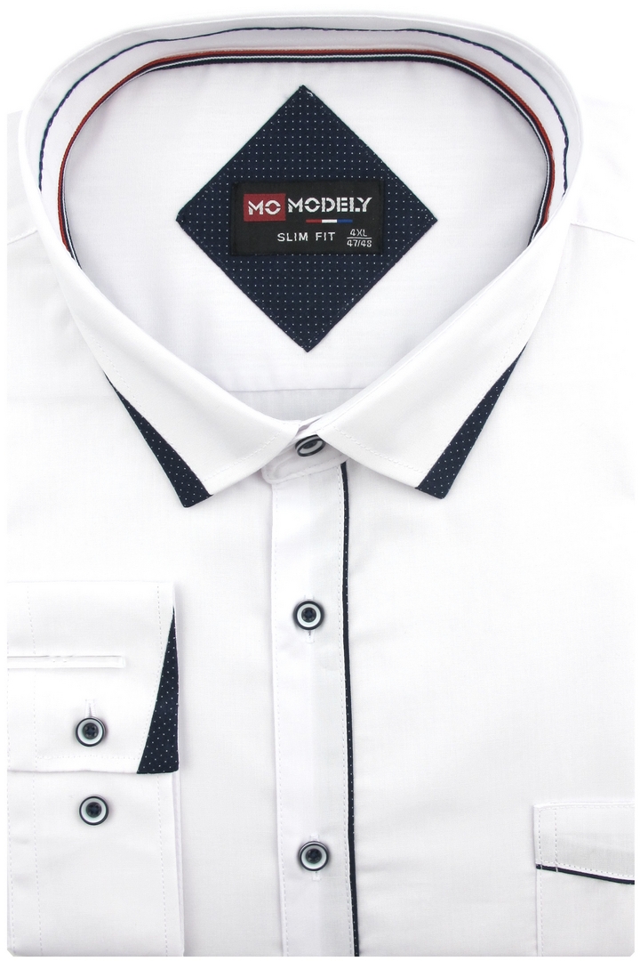 Duża Koszula Męska Elegancka Wizytowa do garnituru gładka biała z lamówką z długim rękawem Duże rozmiary J782