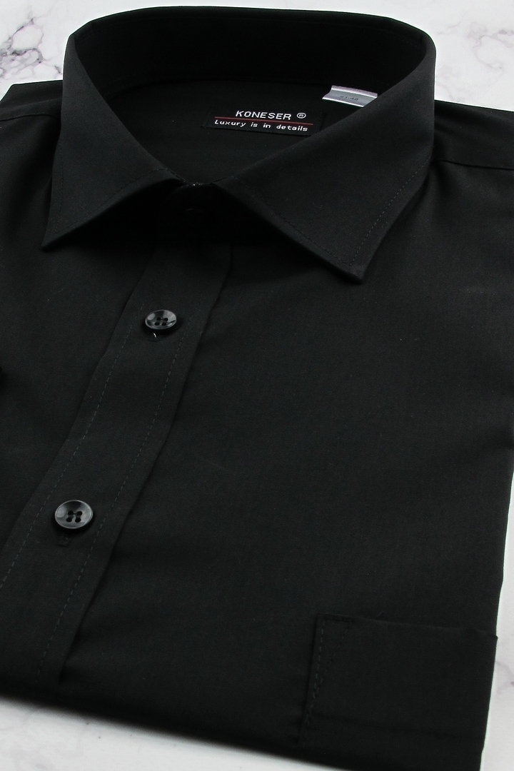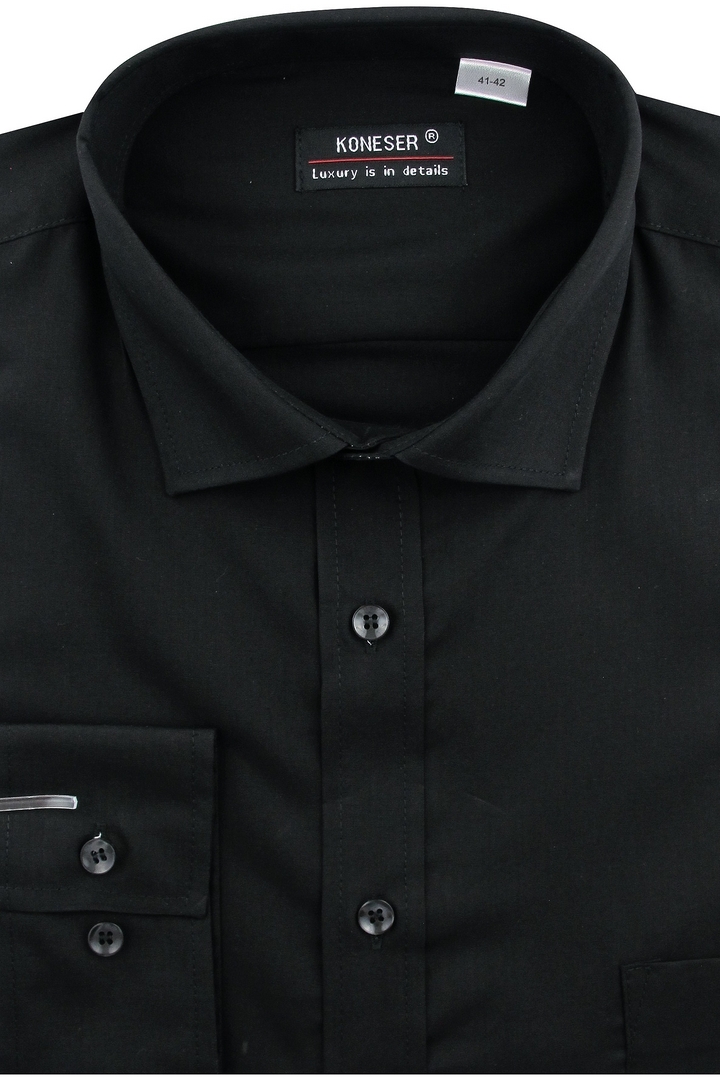 Duża Koszula Męska Elegancka Wizytowa do garnituru gładka czarna z długim rękawem Duże rozmiary Koneser L061
