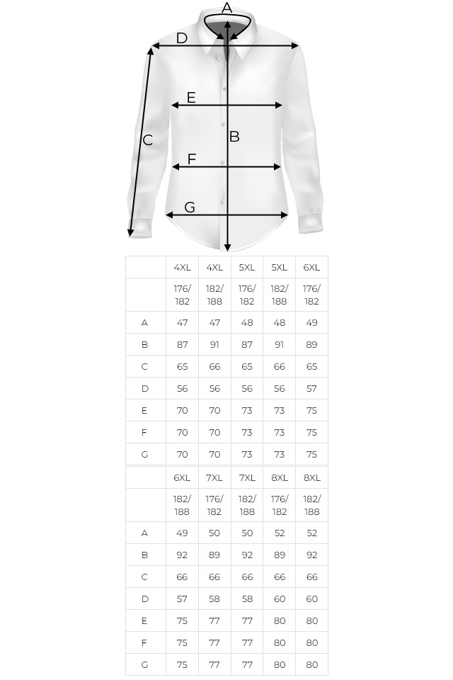 - Każdą koszulę staramy się mierzyć jak najdokładniej. Mierzona jest tylko jedna sztuka z danego modelu oraz rozmiaru, dlatego mogą wystąpić minimalne różnice w wymiarach podanych w tabeli (tolerancja do +/- 2 cm)