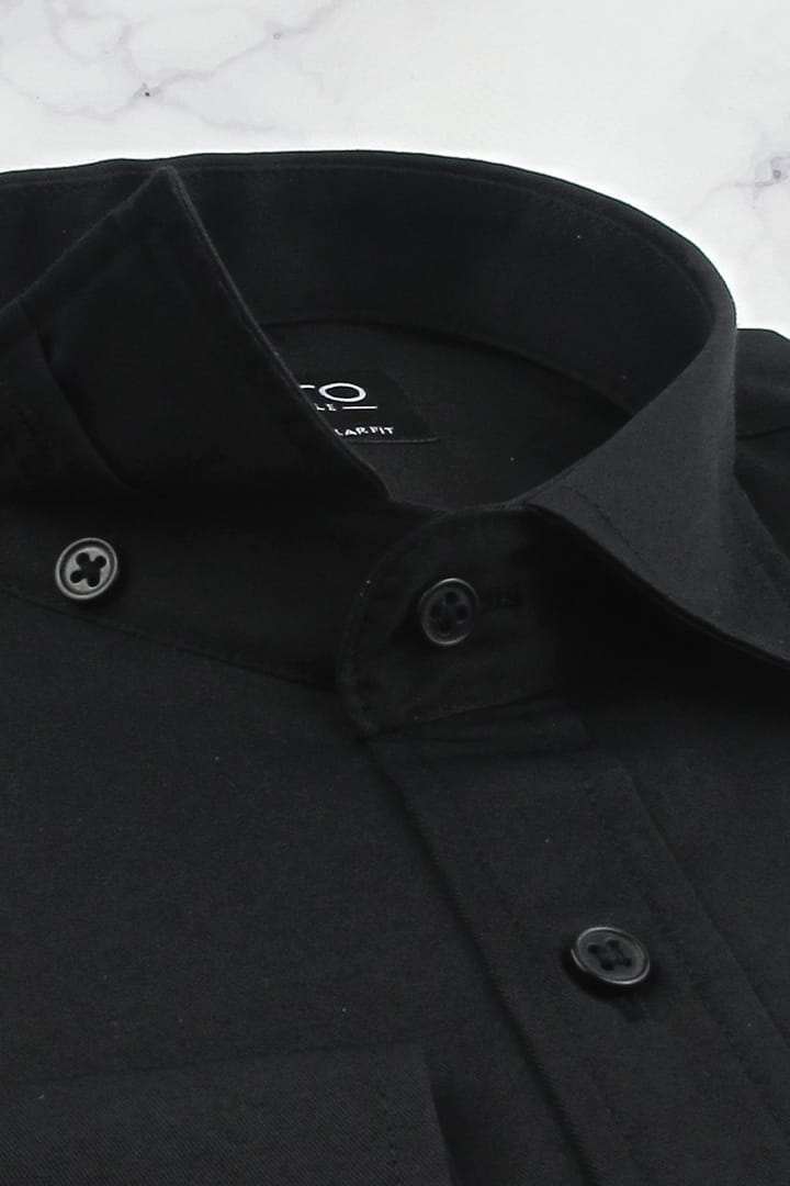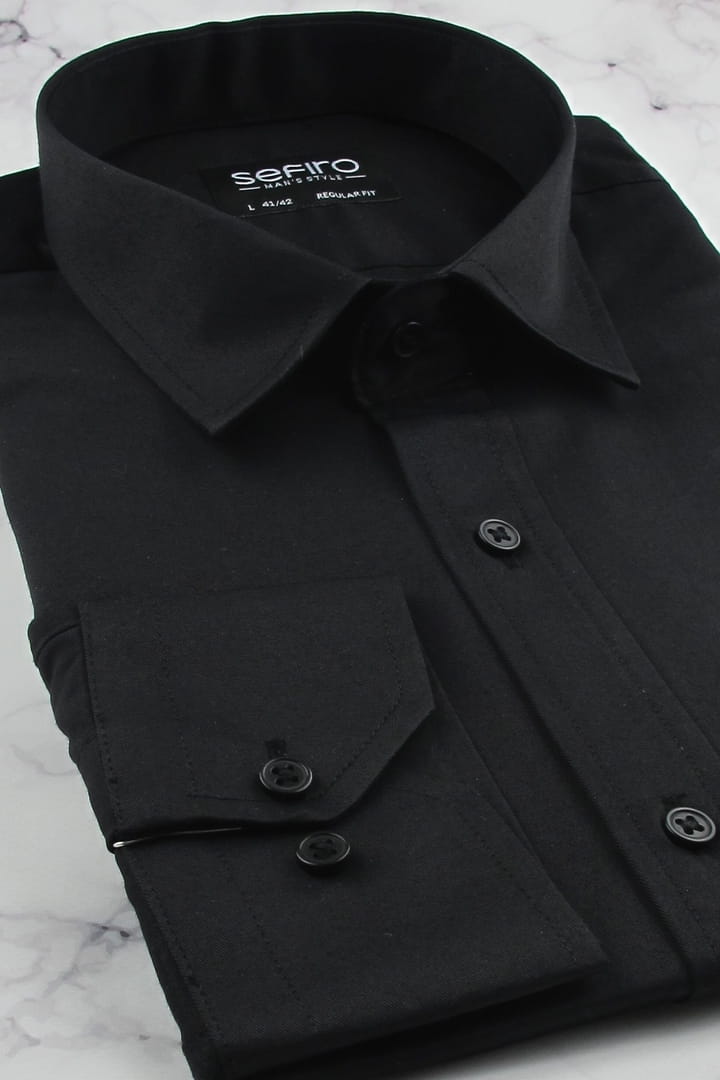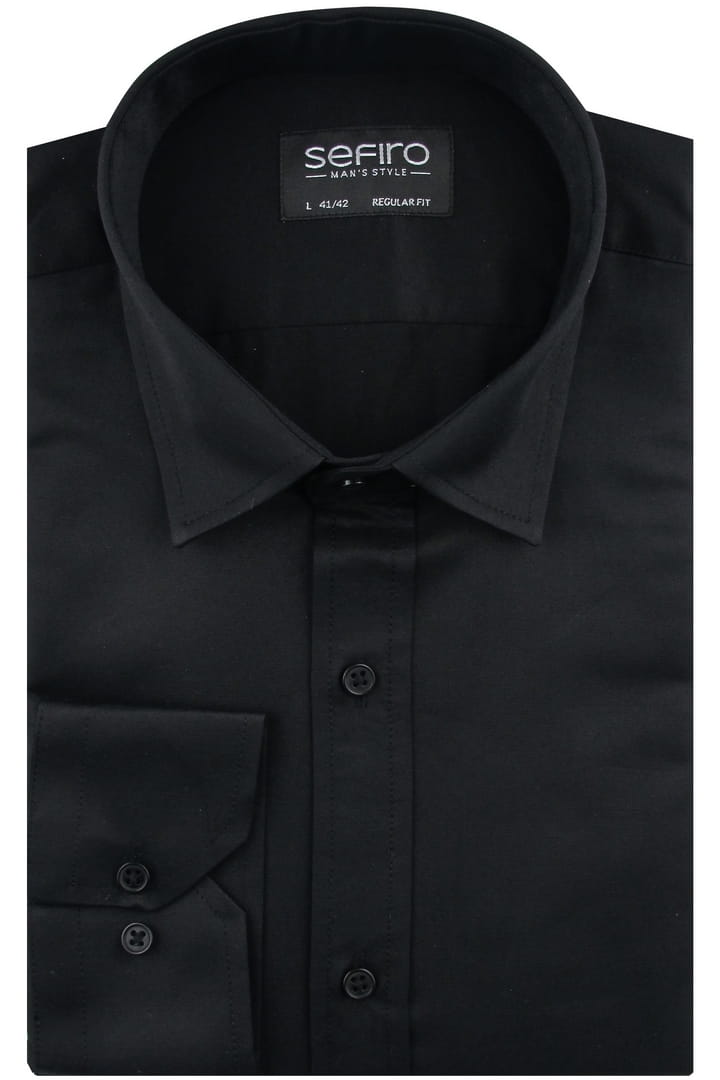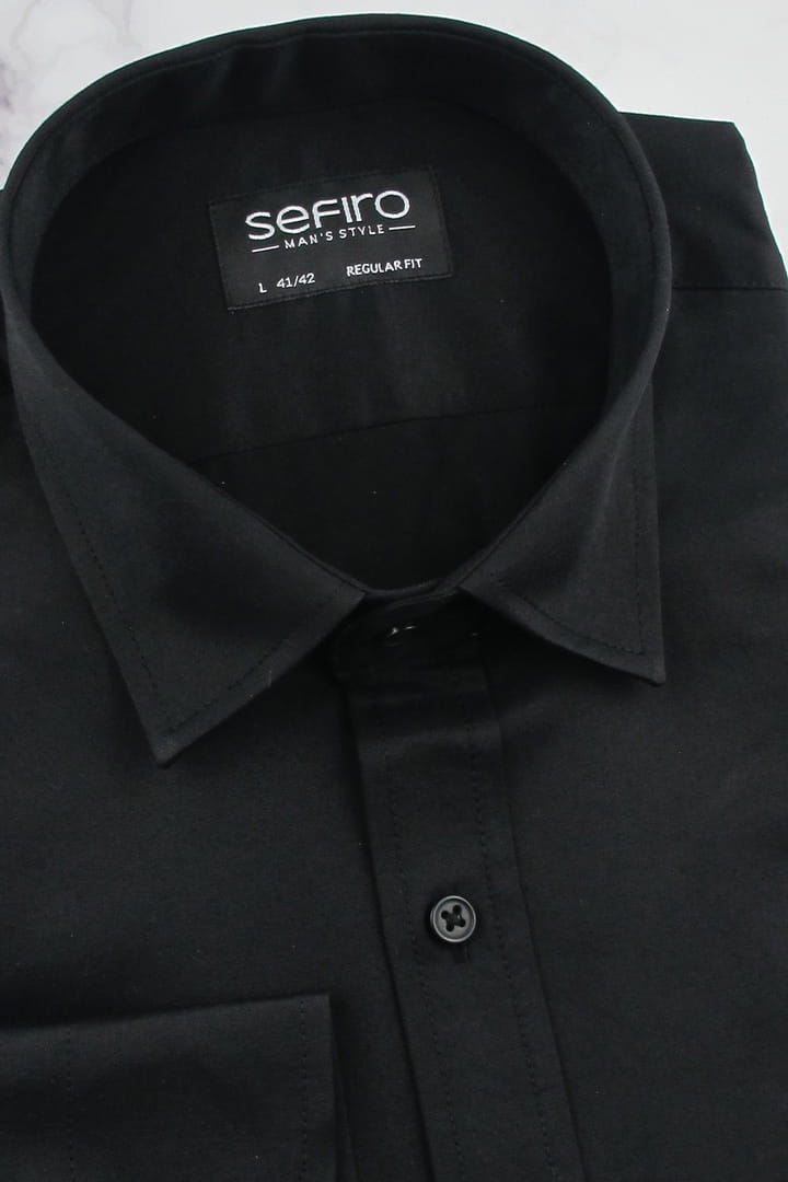 Duża Koszula Męska Elegancka Wizytowa do garnituru gładka czarna z długim rękawem Duże rozmiary Sefiro S103