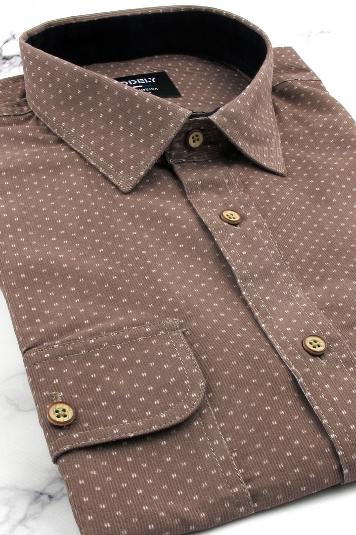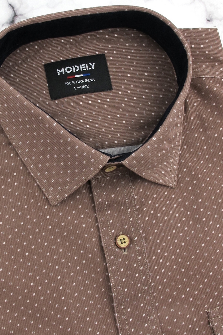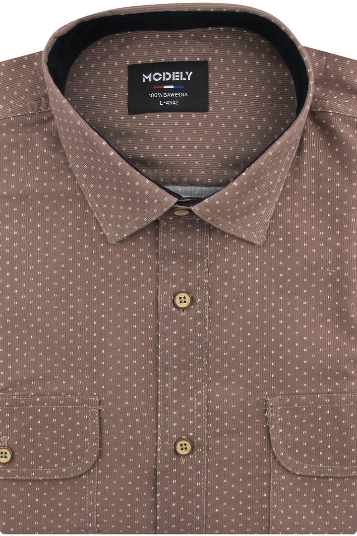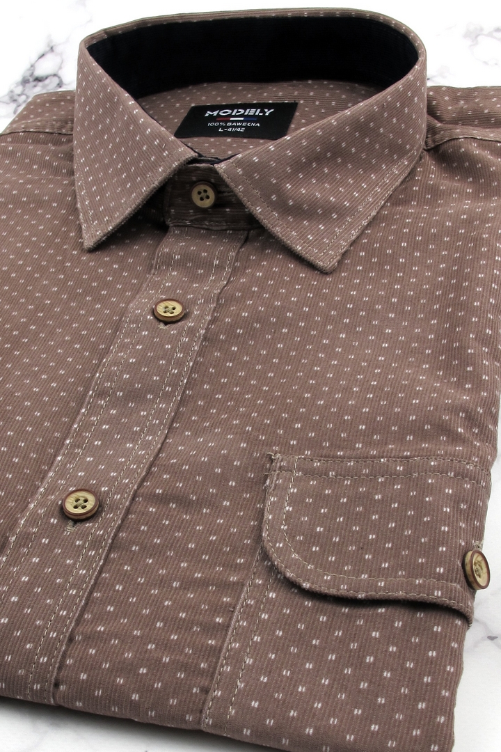 Duża Koszula Męska Sztruksowa Codzienna Casual jasna brązowa we wzorki z długim rękawem Duże rozmiary Modely J688
