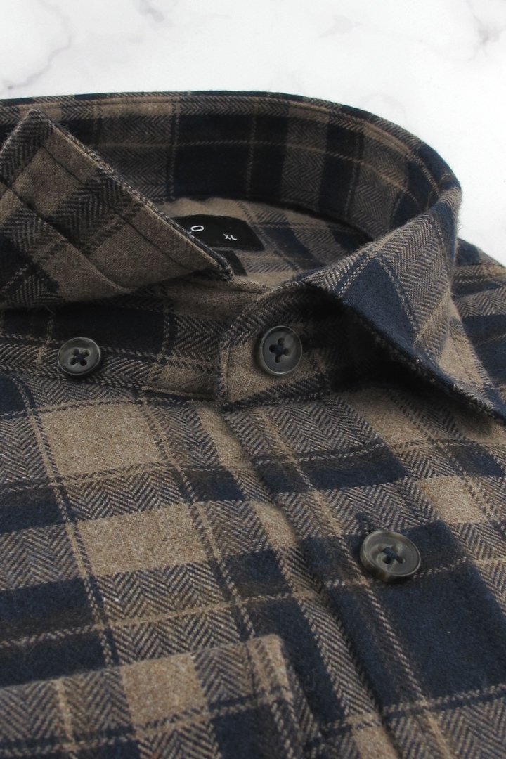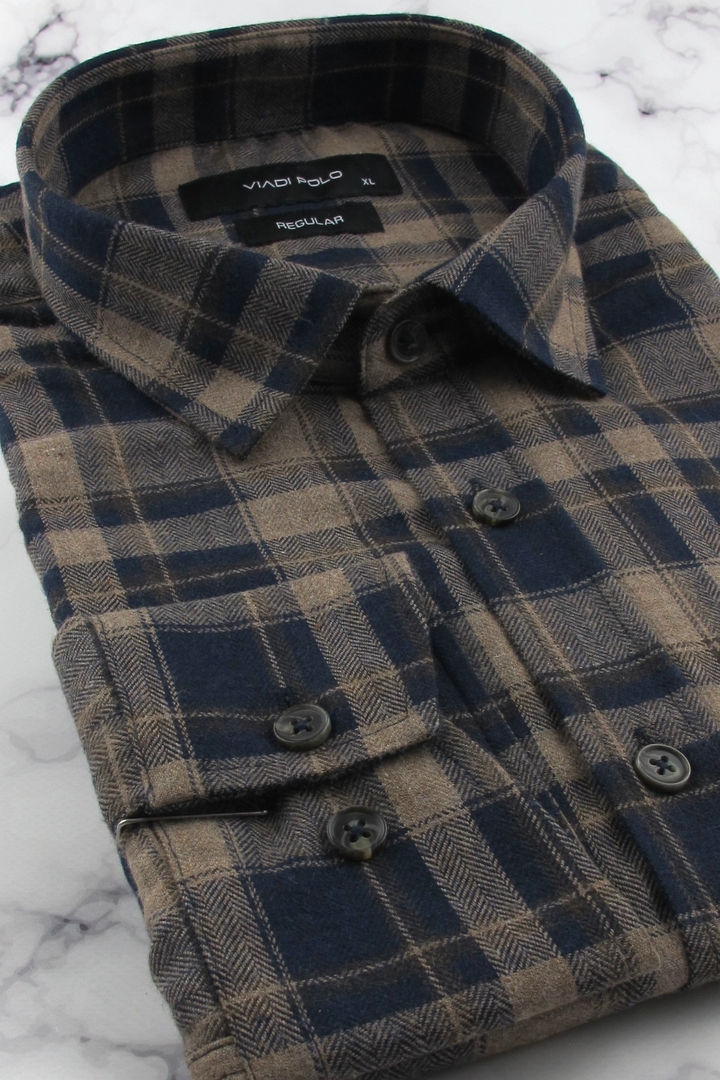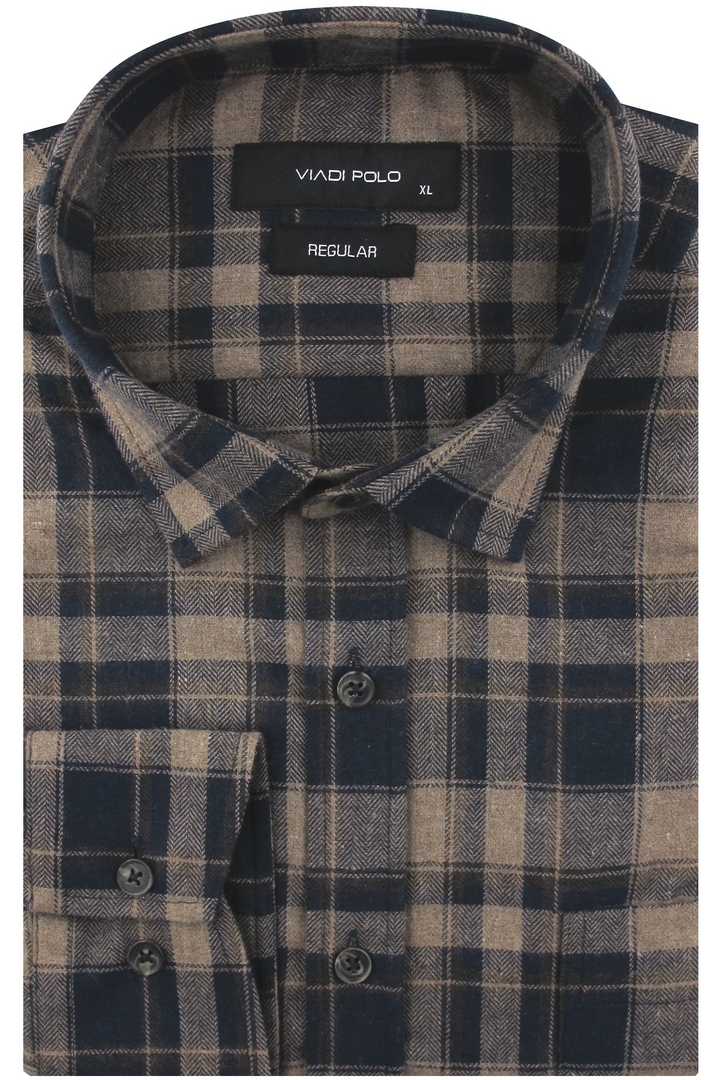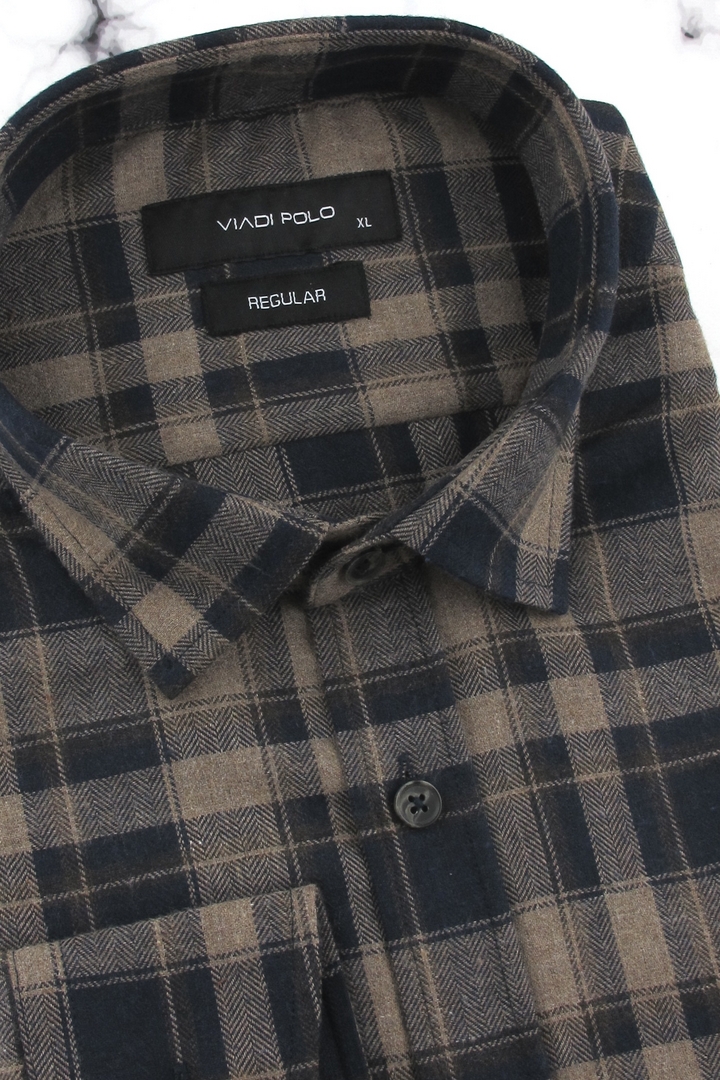 Flanelowa Koszula Męska Codzienna Casual brązowa w kratę z długim rękawem w kroju REGULAR Viadi Polo J625