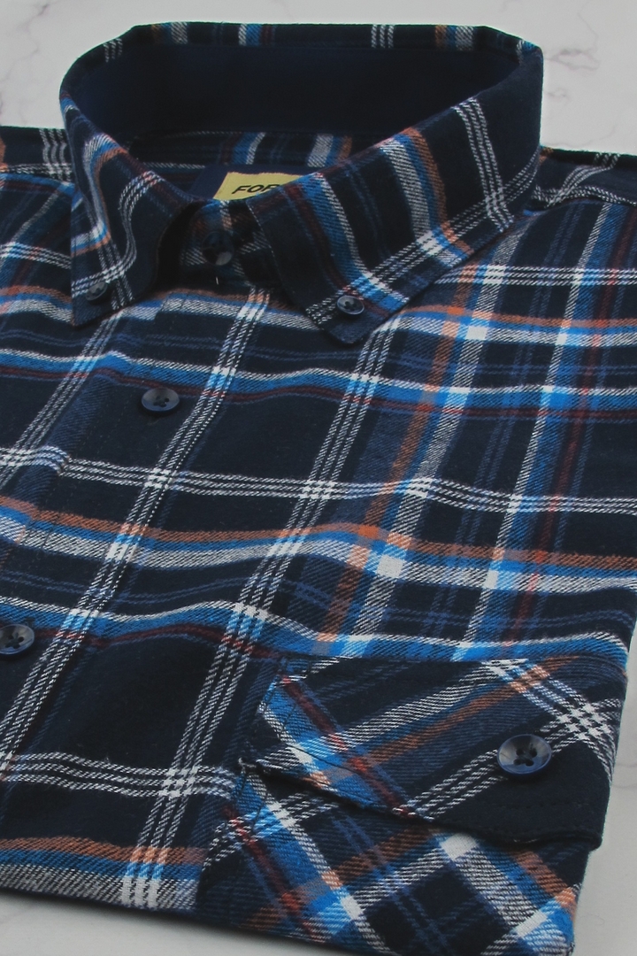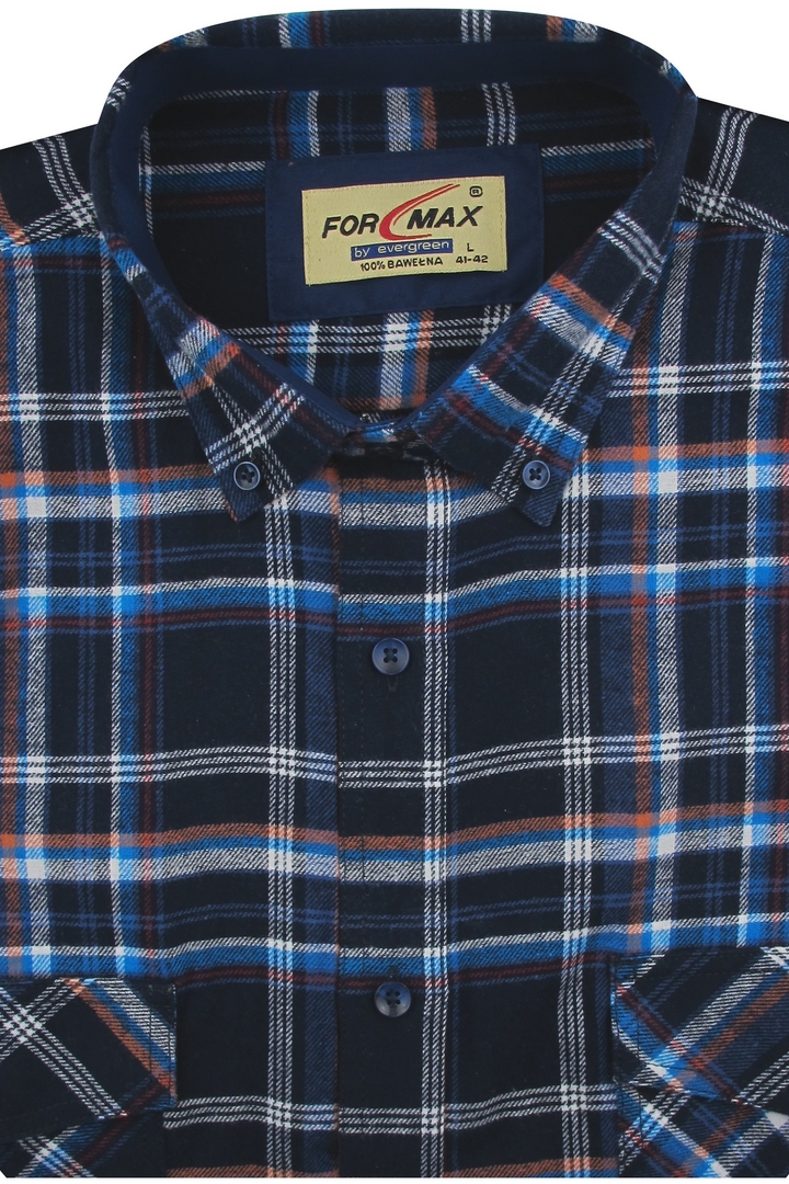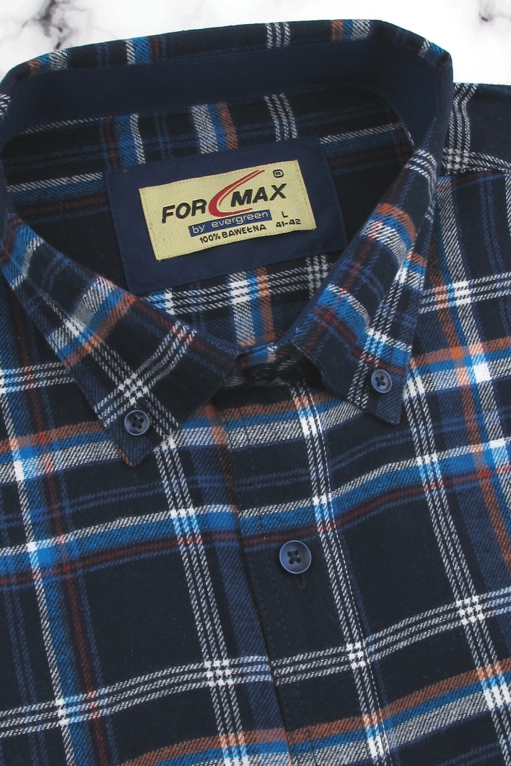 Flanelowa Koszula Męska Codzienna Casual granatowa w kratę z długim rękawem w kroju REGULAR Formax J813