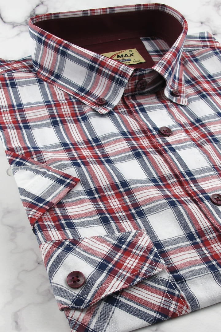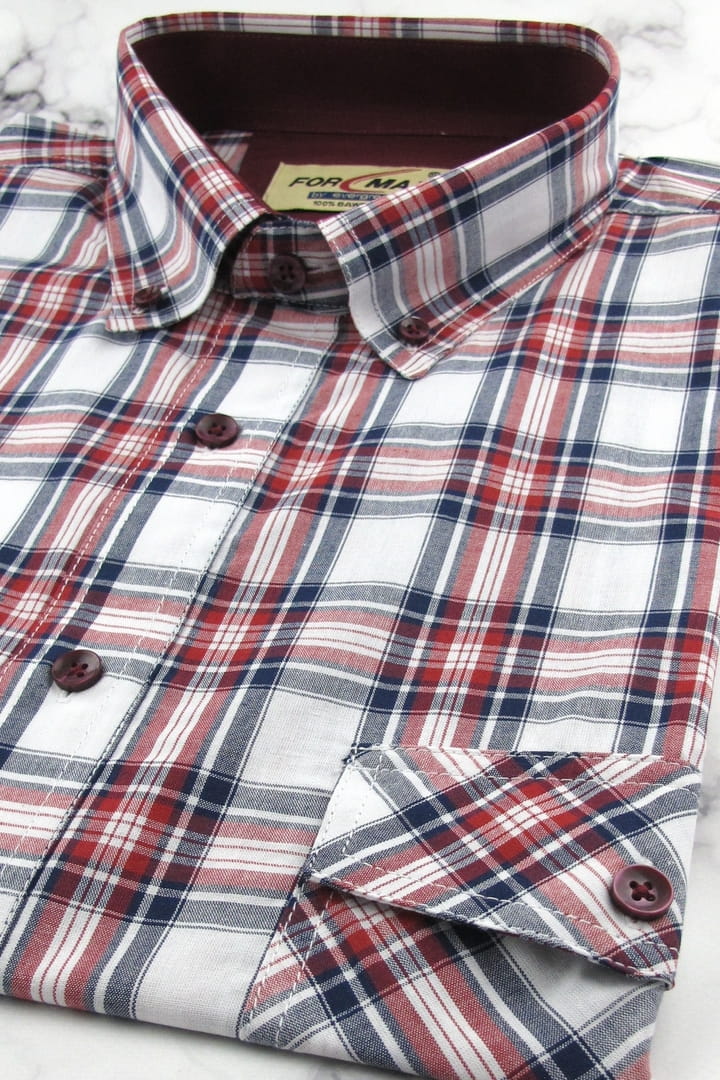 Koszula Męska Bawełniana Codzienna Casual czerwona w kratkę z krótkim rękawem w kroju REGULAR Formax P951