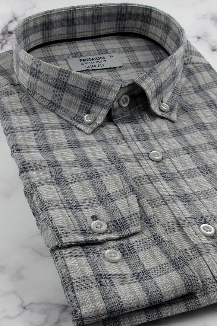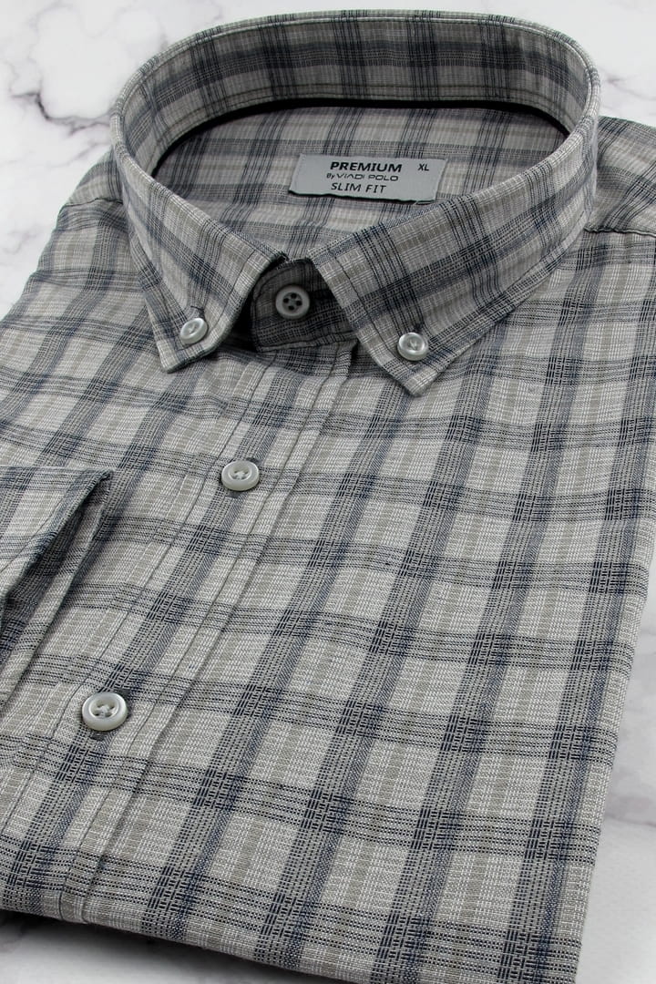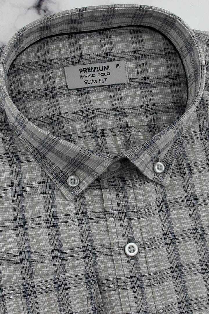 Koszula Męska Codzienna Bawełniana Casual beżowa w kratkę z długim rękawem w kroju SLIM FIT Viadi Polo E658