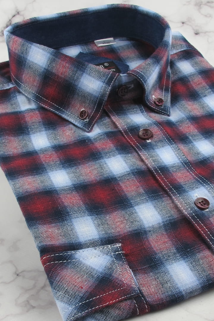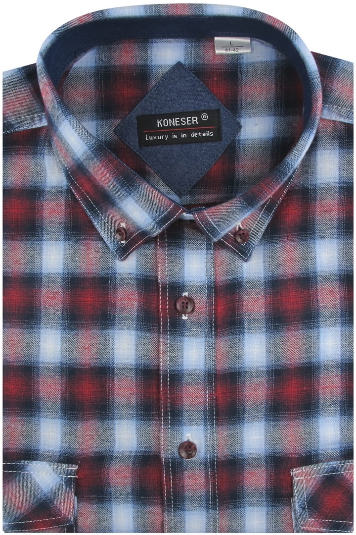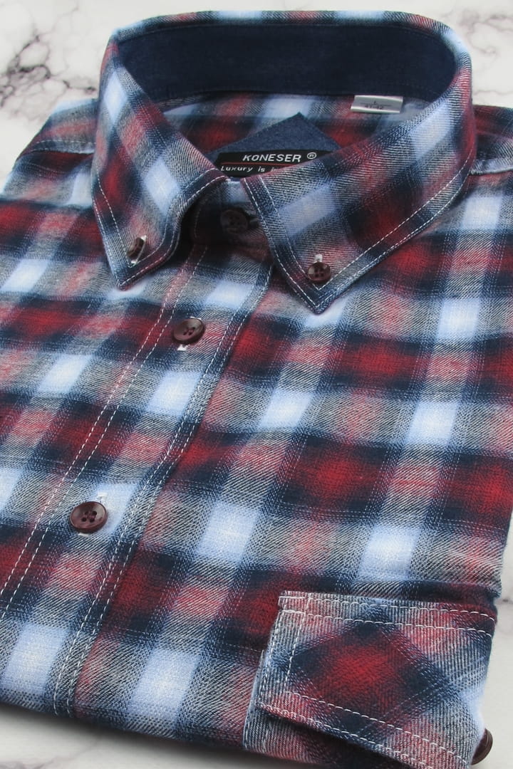 Koszula Męska Codzienna Bawełniana Casual bordowa w kratę z długim rękawem w kroju REGULAR Koneser H875