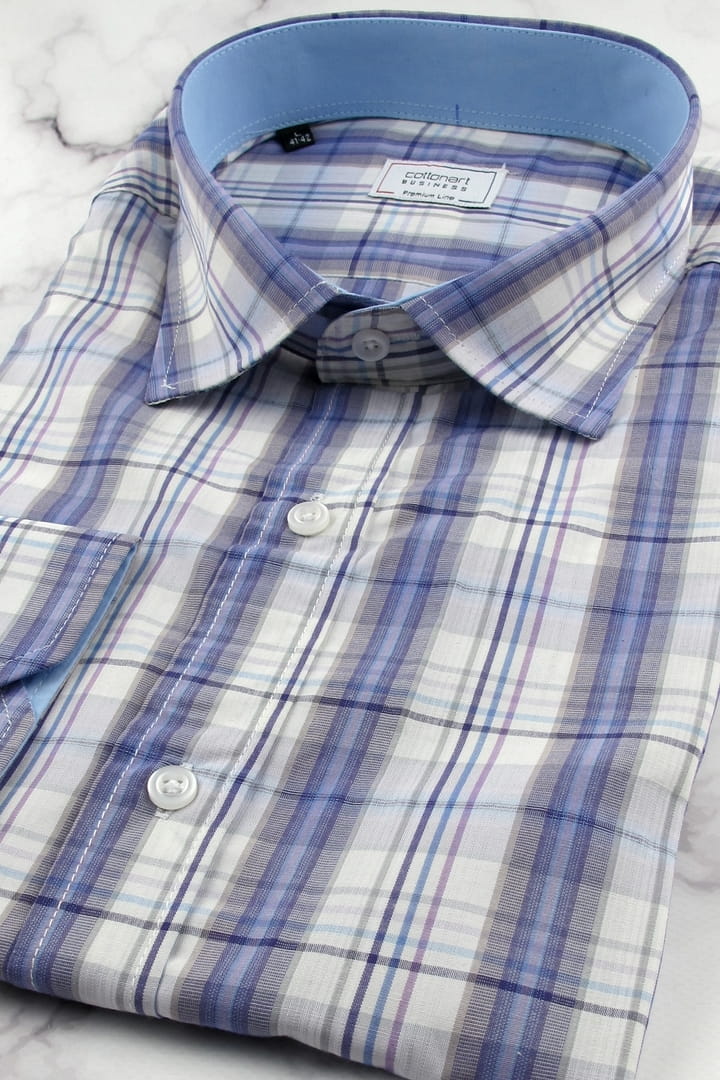 Koszula Męska Codzienna Bawełniana Casual fioletowa w kratkę z długim rękawem w kroju SLIM FIT Cottonart E825