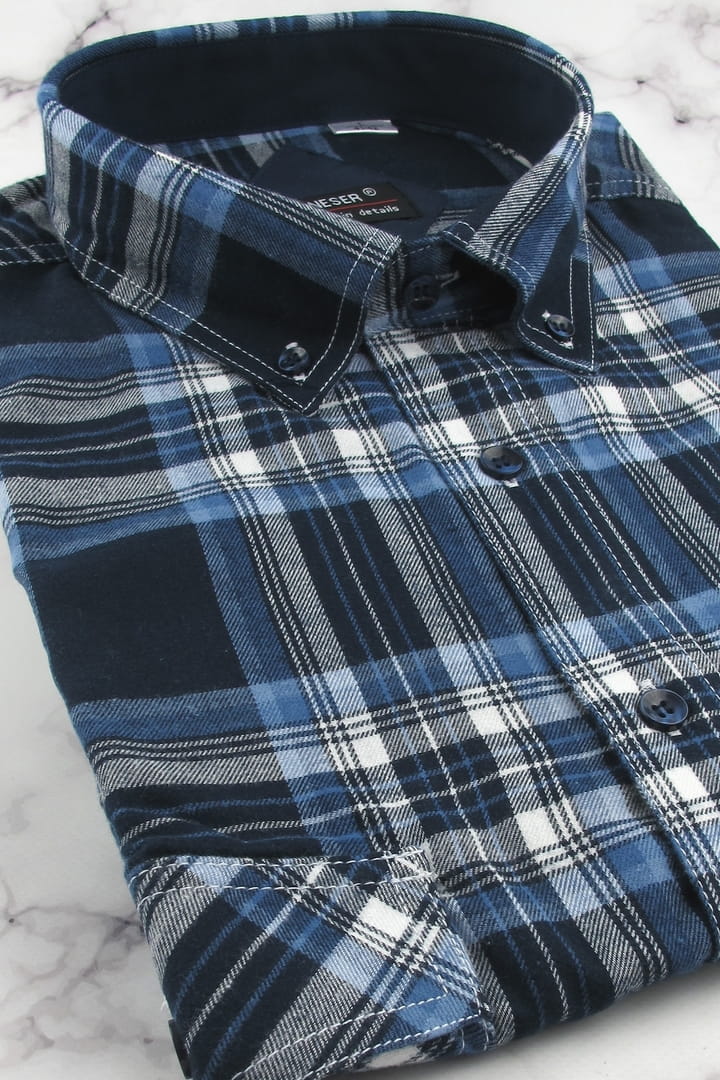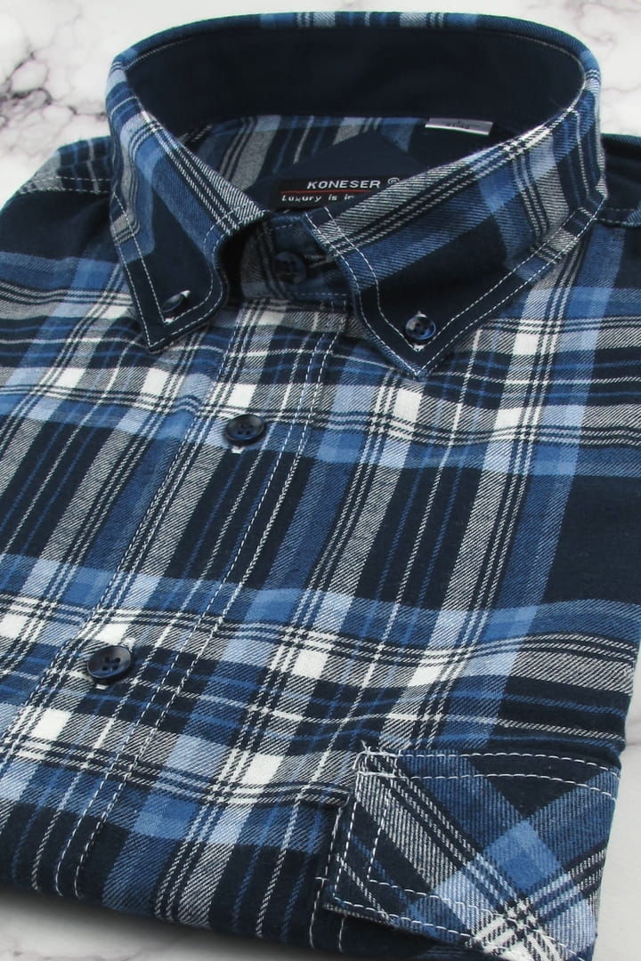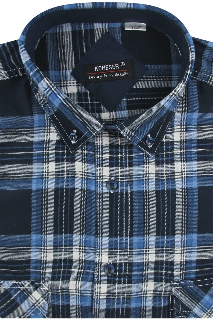 Koszula Męska Codzienna Bawełniana Casual granatowa w kratę z długim rękawem w kroju REGULAR Koneser H876