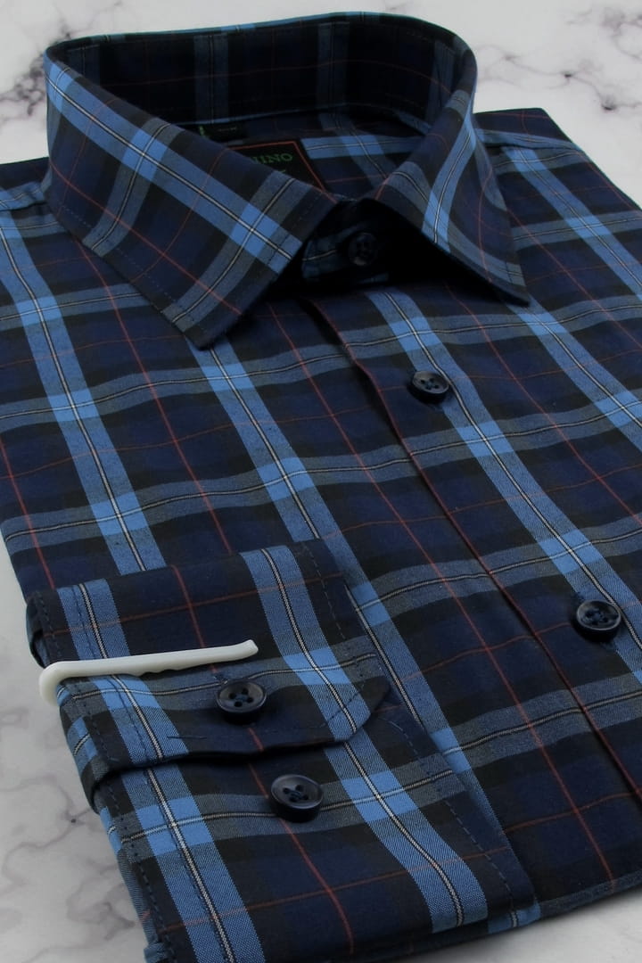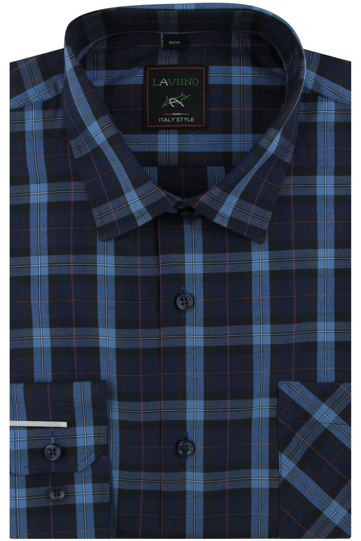 Koszula Męska Codzienna Bawełniana Casual granatowa w kratkę z długim rękawem w kroju REGULAR Laviino H017