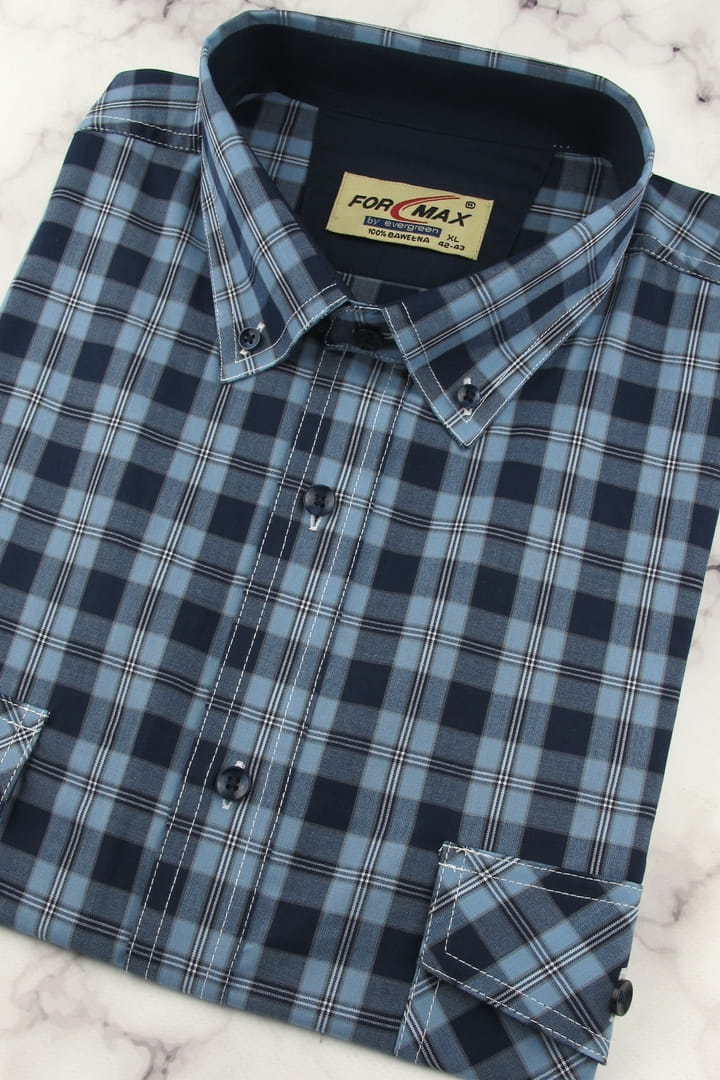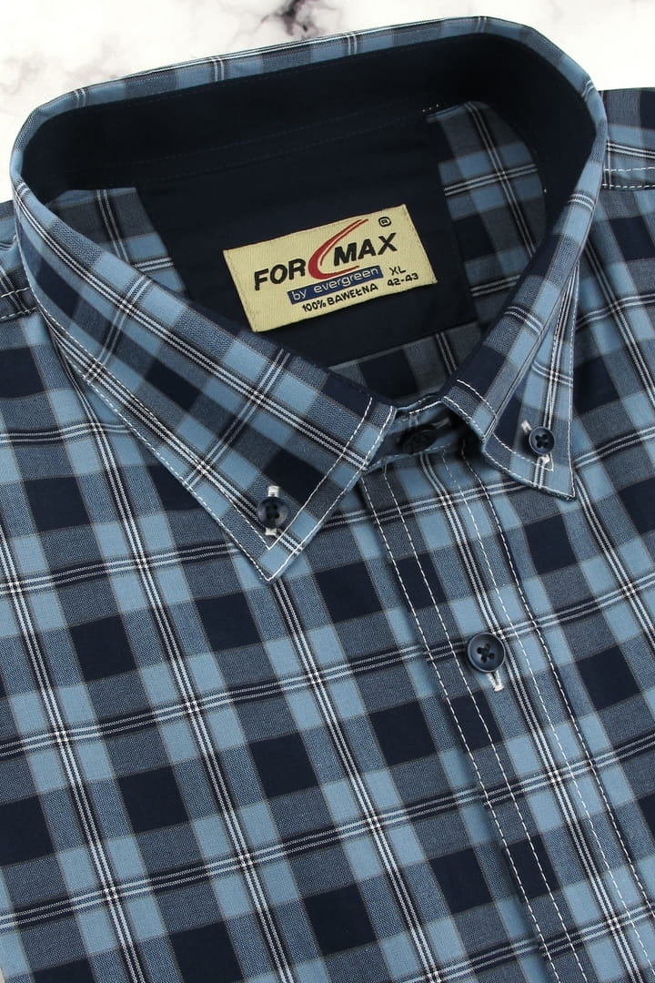 Koszula Męska Codzienna Casual błękitna w kratę z długim rękawem w kroju REGULAR Formax H977