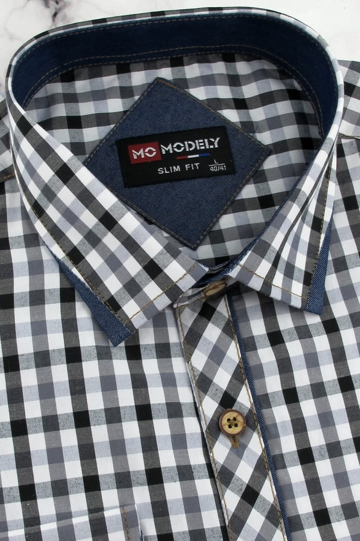 Koszula Męska Codzienna Casual czarna w kratkę z długim rękawem w kroju SLIM FIT Modely H596