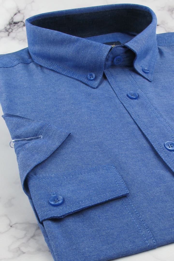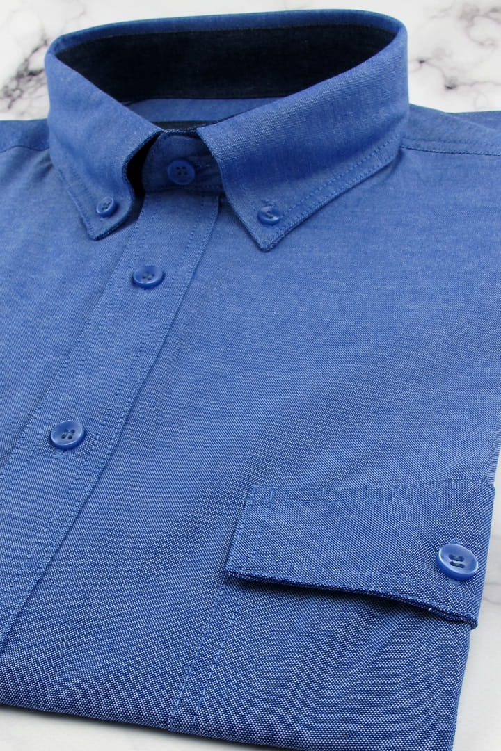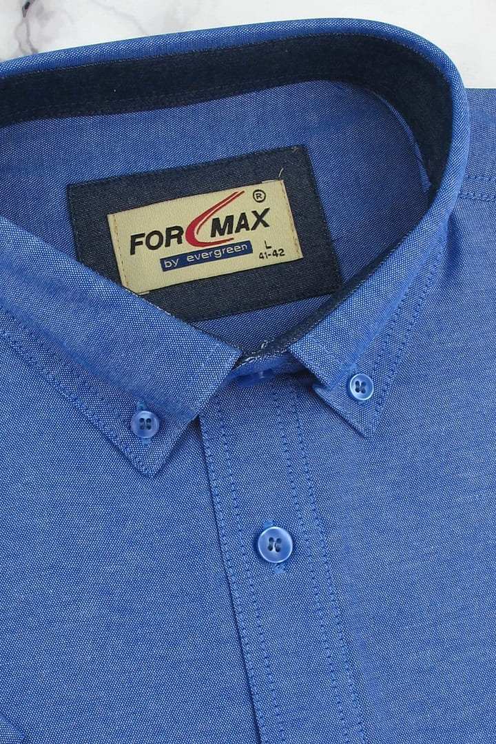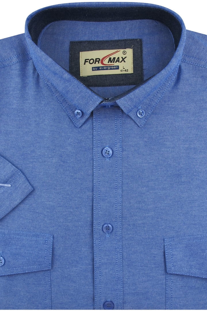 Koszula Męska Codzienna Casual gładka niebieska z krótkim rękawem w kroju REGULAR Formax R018