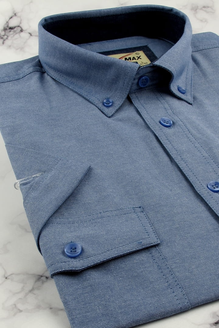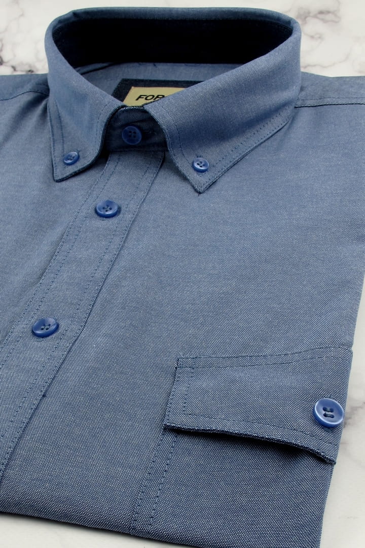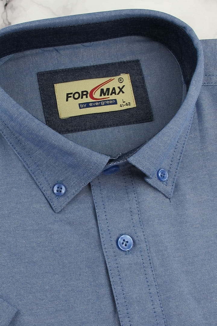 Koszula Męska Codzienna Casual gładka niebieska z krótkim rękawem w kroju REGULAR Formax R019