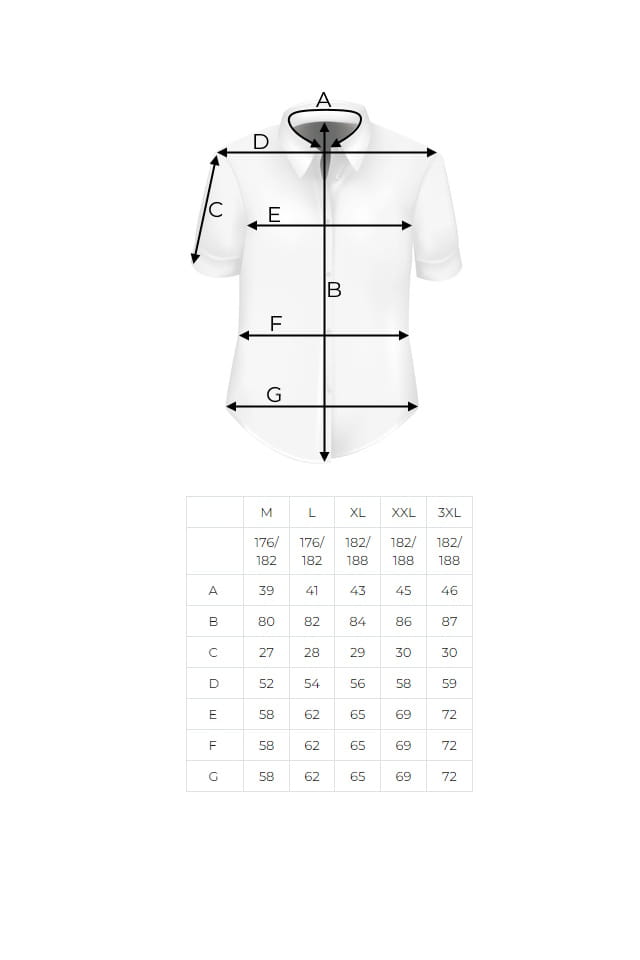 - Każdą koszulę staramy się mierzyć jak najdokładniej. Mierzona jest tylko jedna sztuka z danego modelu oraz rozmiaru, dlatego mogą wystąpić minimalne różnice w wymiarach podanych w tabeli (tolerancja do +/- 2 cm)