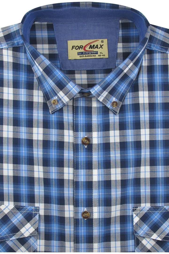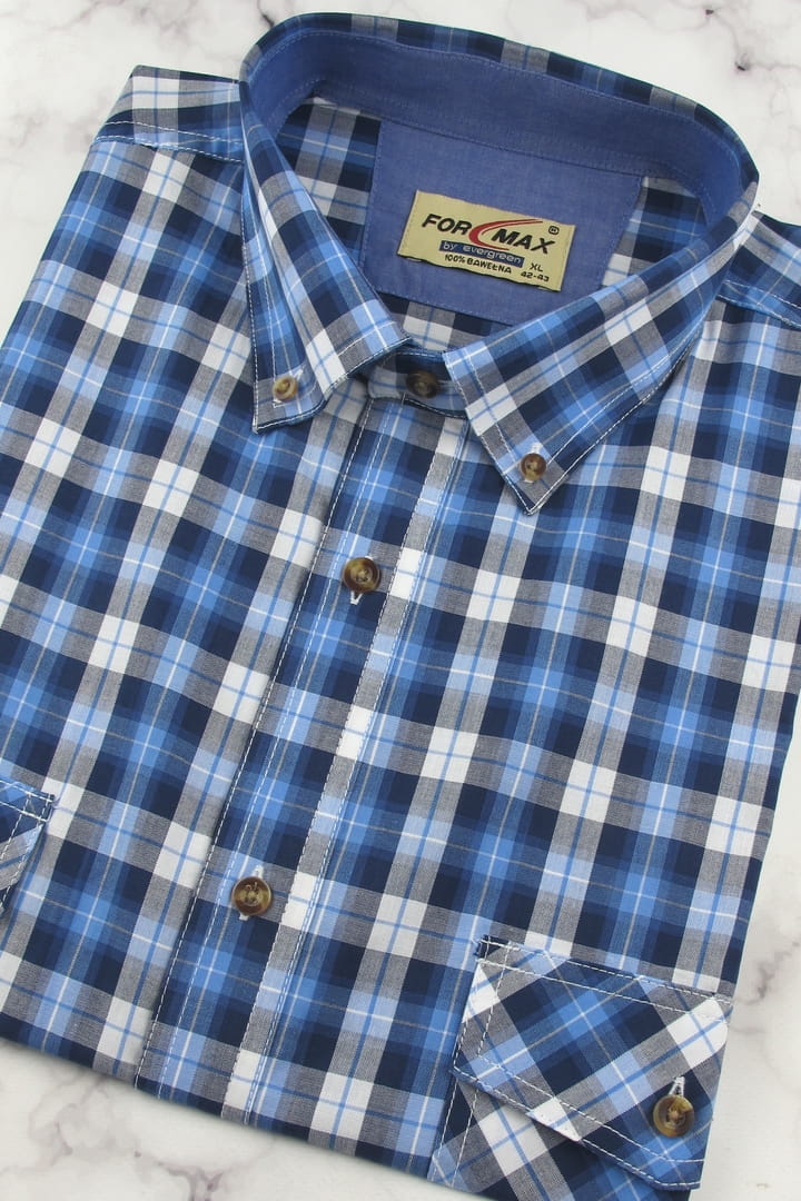 Koszula Męska Codzienna Casual niebieska w kratę z długim rękawem w kroju REGULAR Formax H979