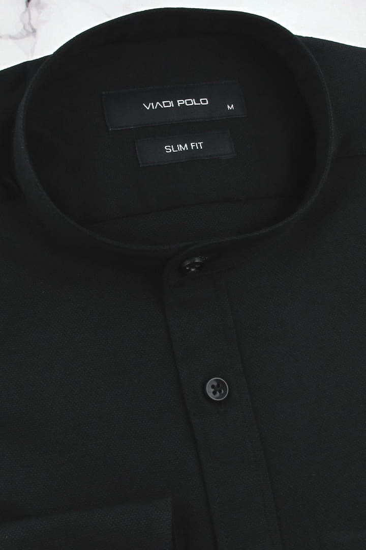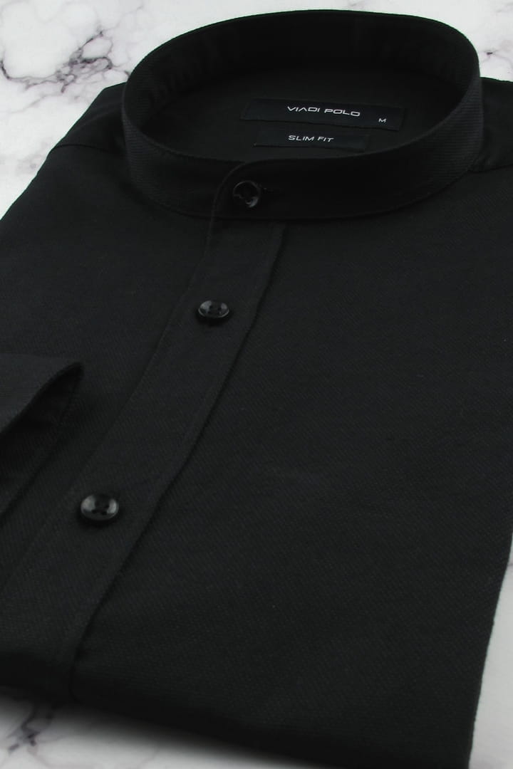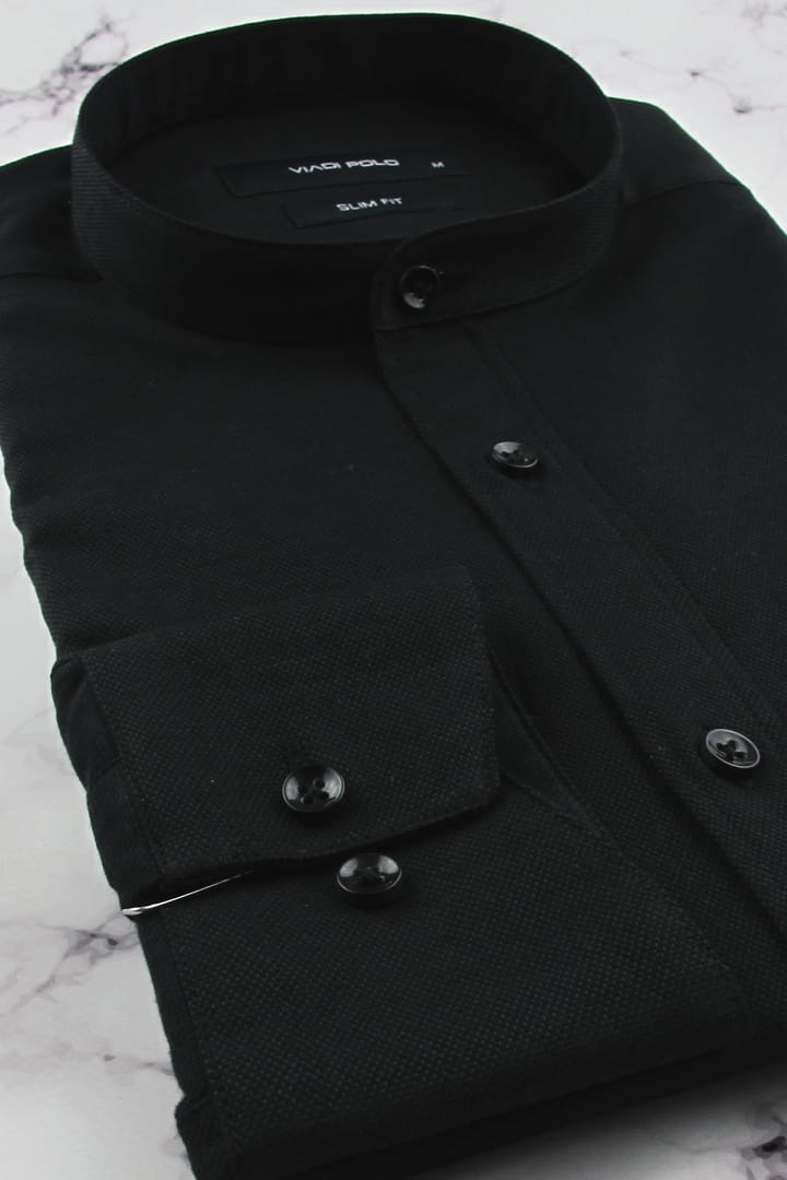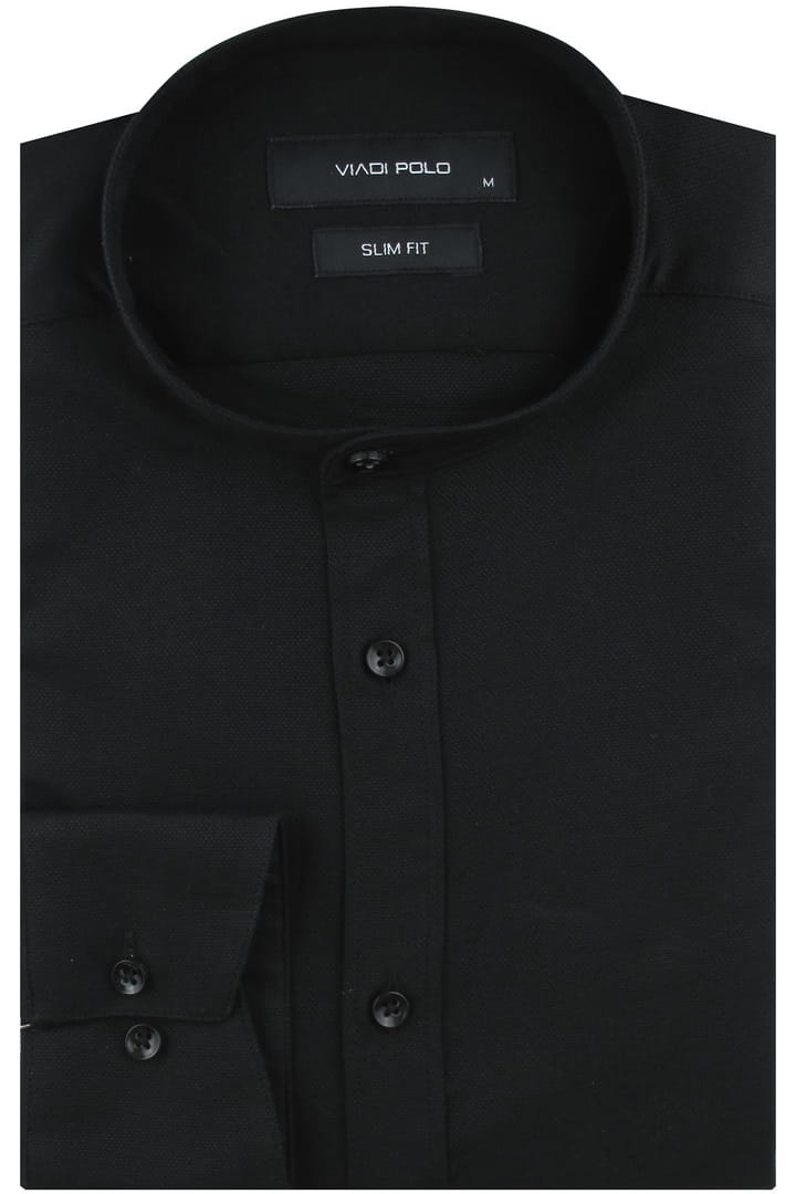 Koszula Męska Codzienna ze stójką bawełna oxford gładka czarna z długim rękawem w kroju SLIM FIT Viadi Polo H261