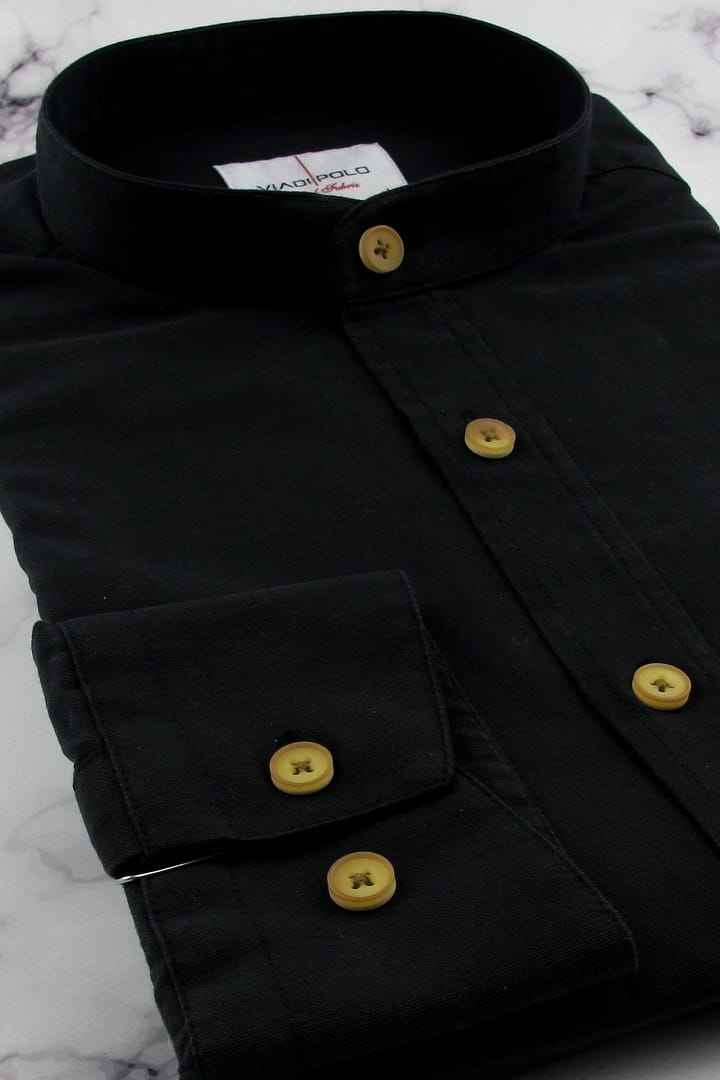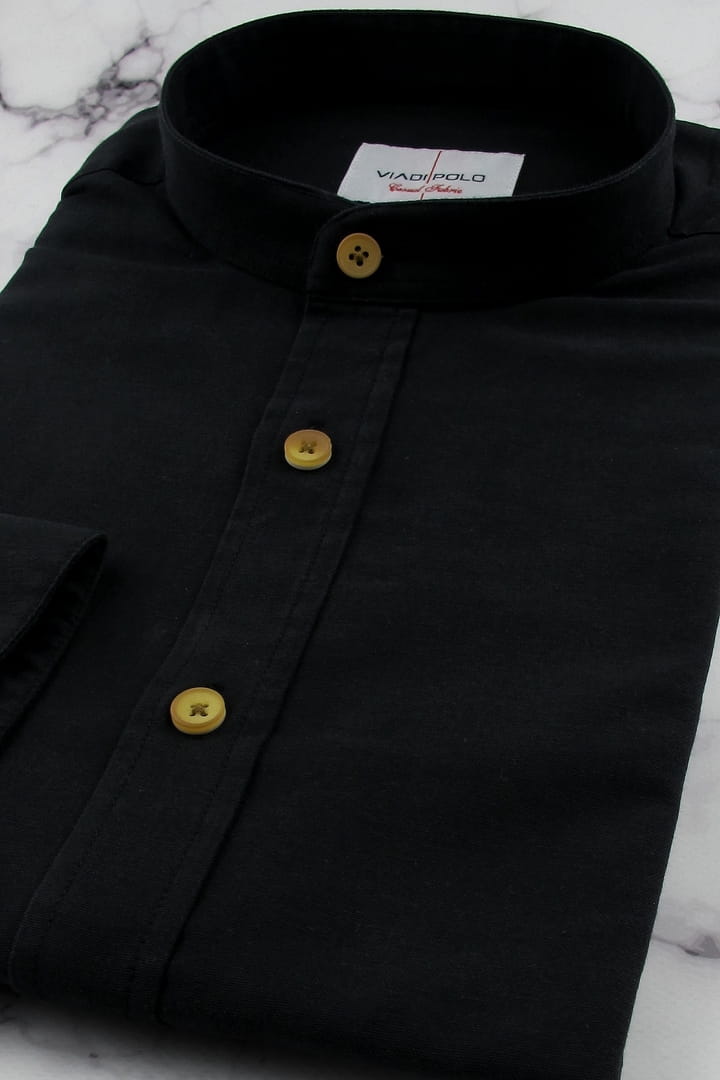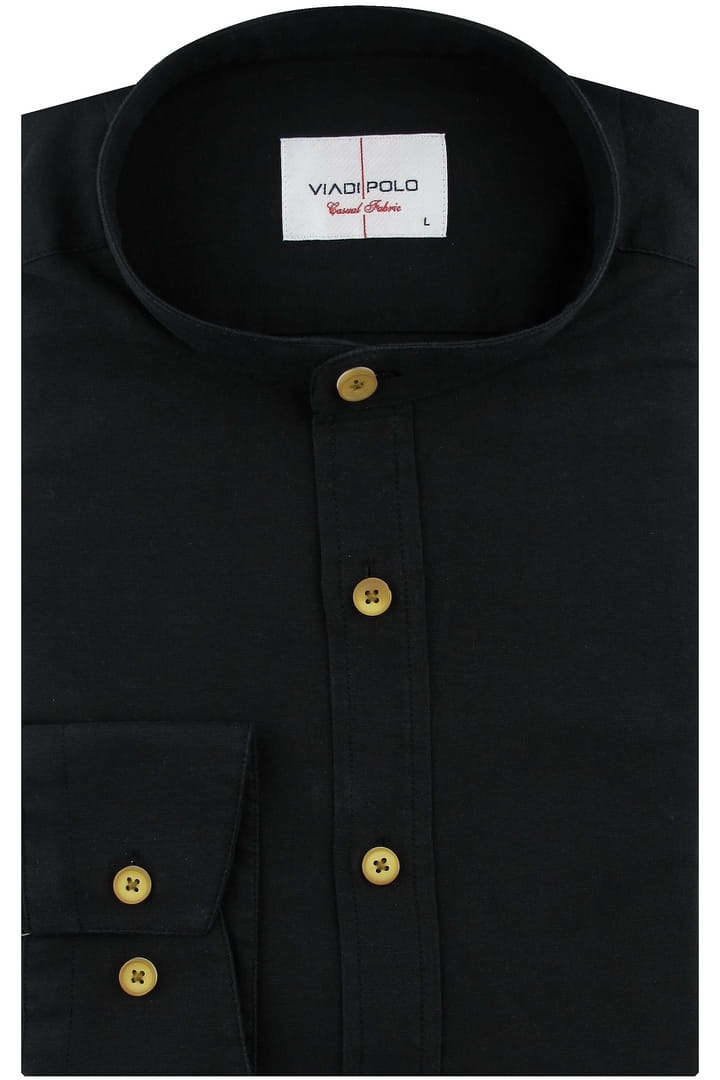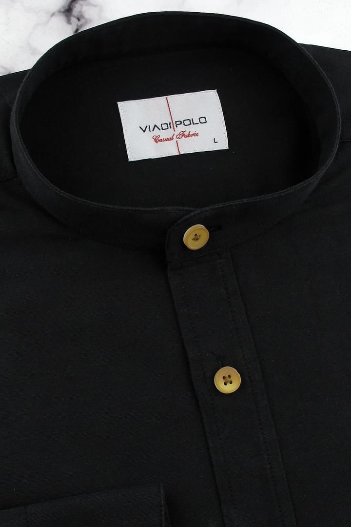 Koszula Męska Codzienna ze stójką gładka czarna z długim rękawem w kroju SLIM FIT Viadi Polo H066