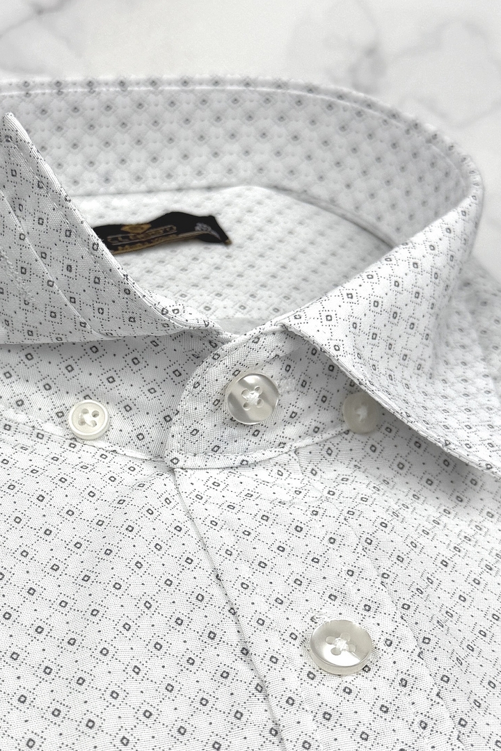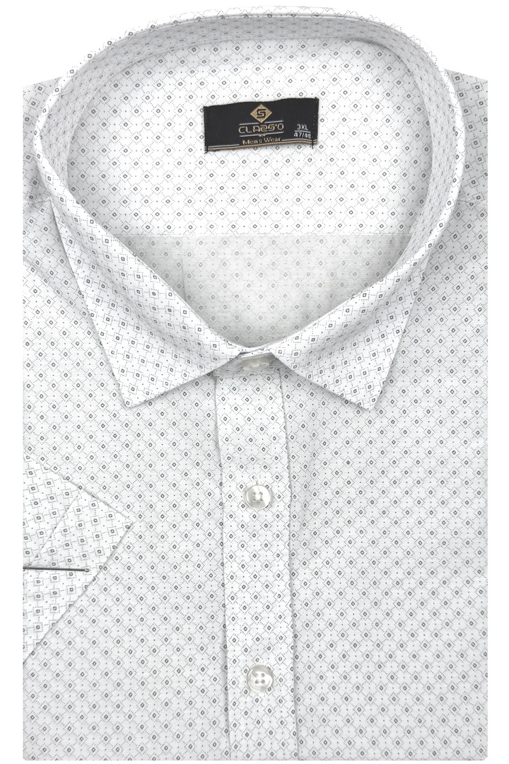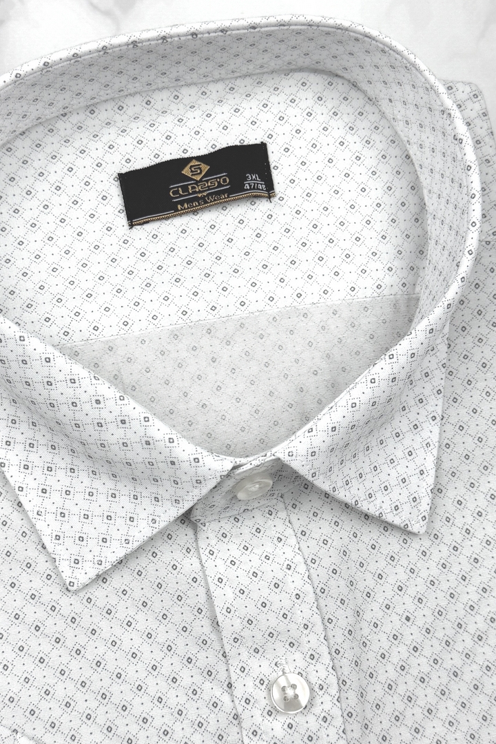 Koszula Męska Elegancka Biała we Wzorki Duże rozmiary Classo R451