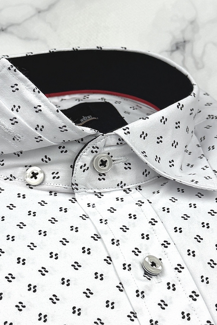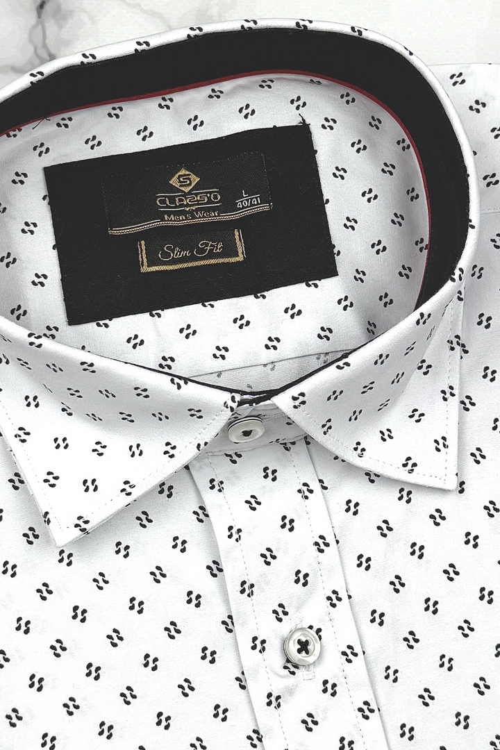 Koszula Męska Elegancka Biała we Wzorki Slim Fit Classo R426