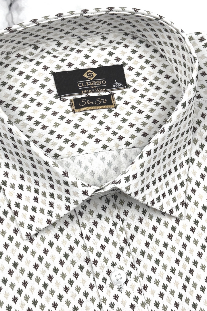 Koszula Męska Elegancka Biała we Wzorki Slim Fit Classo R444