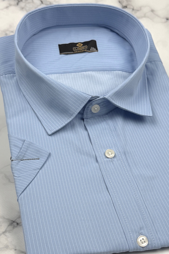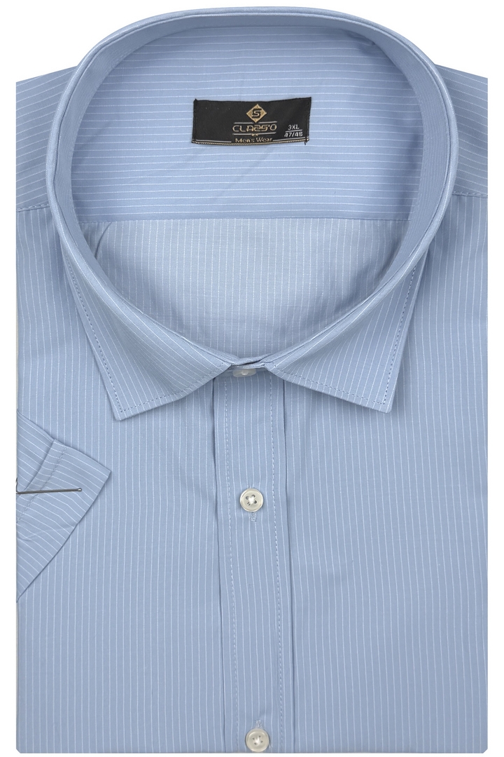 Koszula męska elegancka w dużych rozmiarach w paski z krótkim rękawem doskonale komponuje się z eleganckimi spodniami, chinosami czy klasycznymi jeansami. Można ją nosić zarówno w bardziej formalnych stylizacjach, jak i w wersji smart casual.