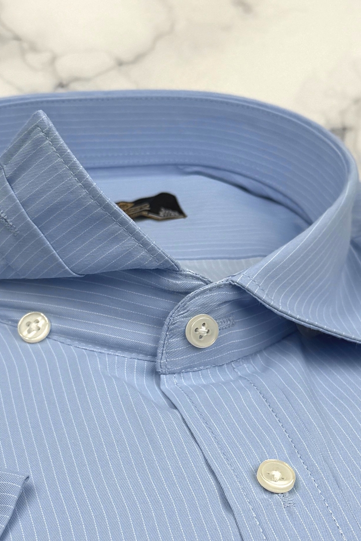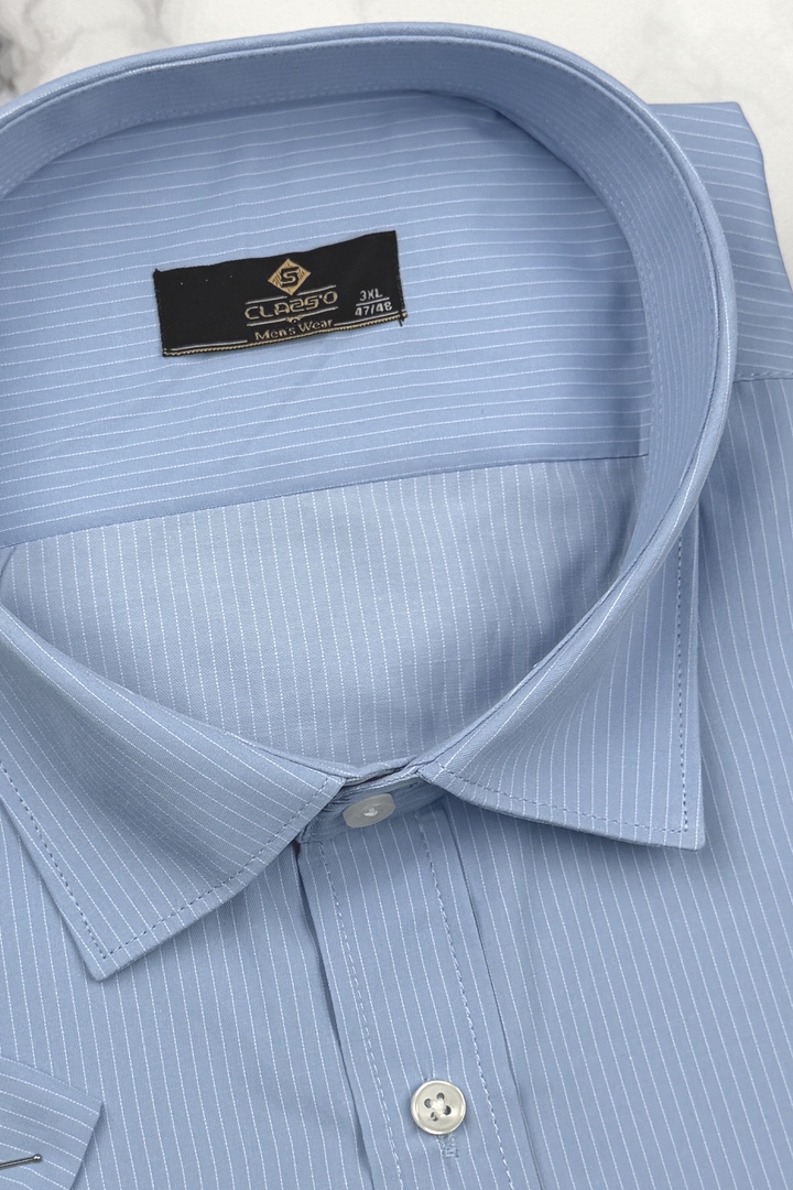 Koszula Męska Elegancka Błękitna w Paski Duże Rozmiary Classo R462