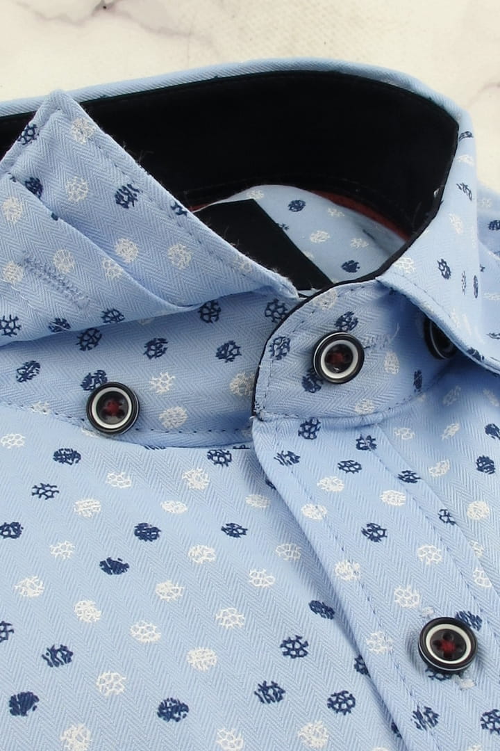 Koszula Męska Elegancka Błękitna we Wzorki Slim Fit Classo R433