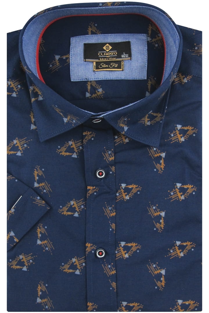 Koszula męska elegancka z krótkim rękawem we wzorki w kroju slim fit doskonale komponuje się z eleganckimi spodniami, chinosami oraz stylowymi jeansami. Można ją nosić zarówno w bardziej formalnych stylizacjach, jak i w wersji smart casual.