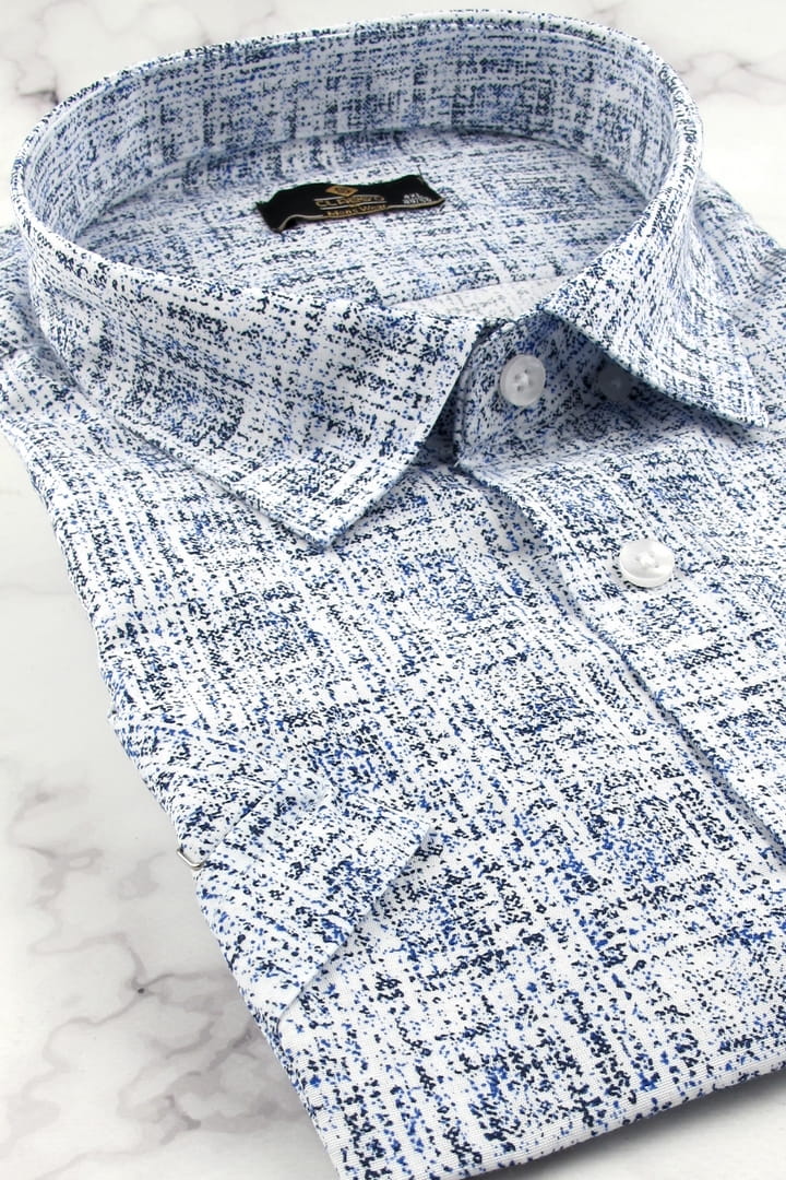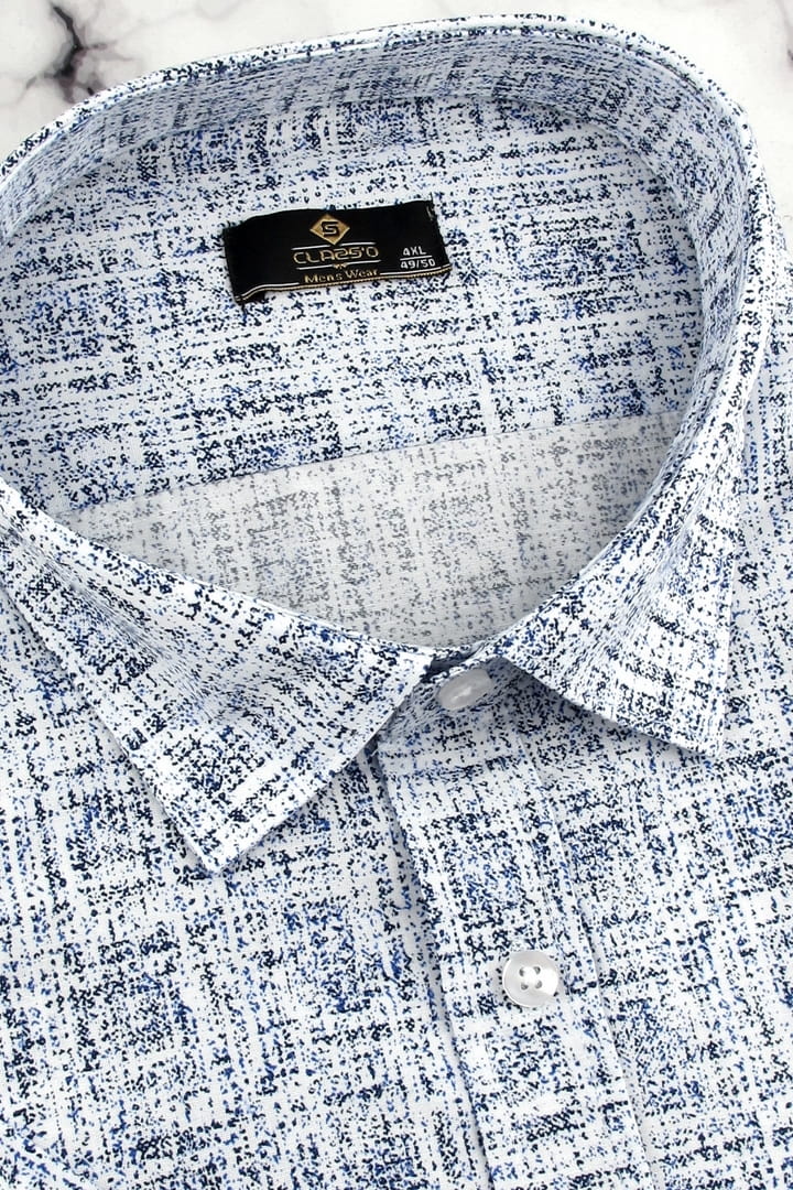 Koszula Męska Elegancka Niebieska we Wzorki Duże rozmiary Classo R449