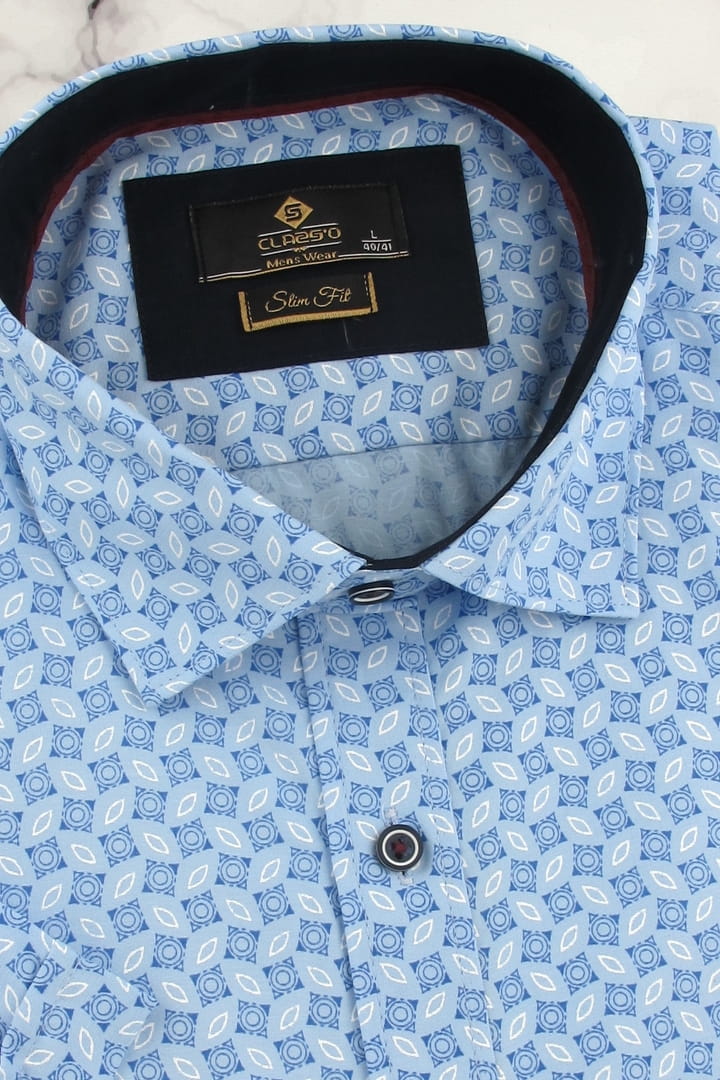 Koszula Męska Elegancka Niebieska we Wzorki Slim Fit Classo R431