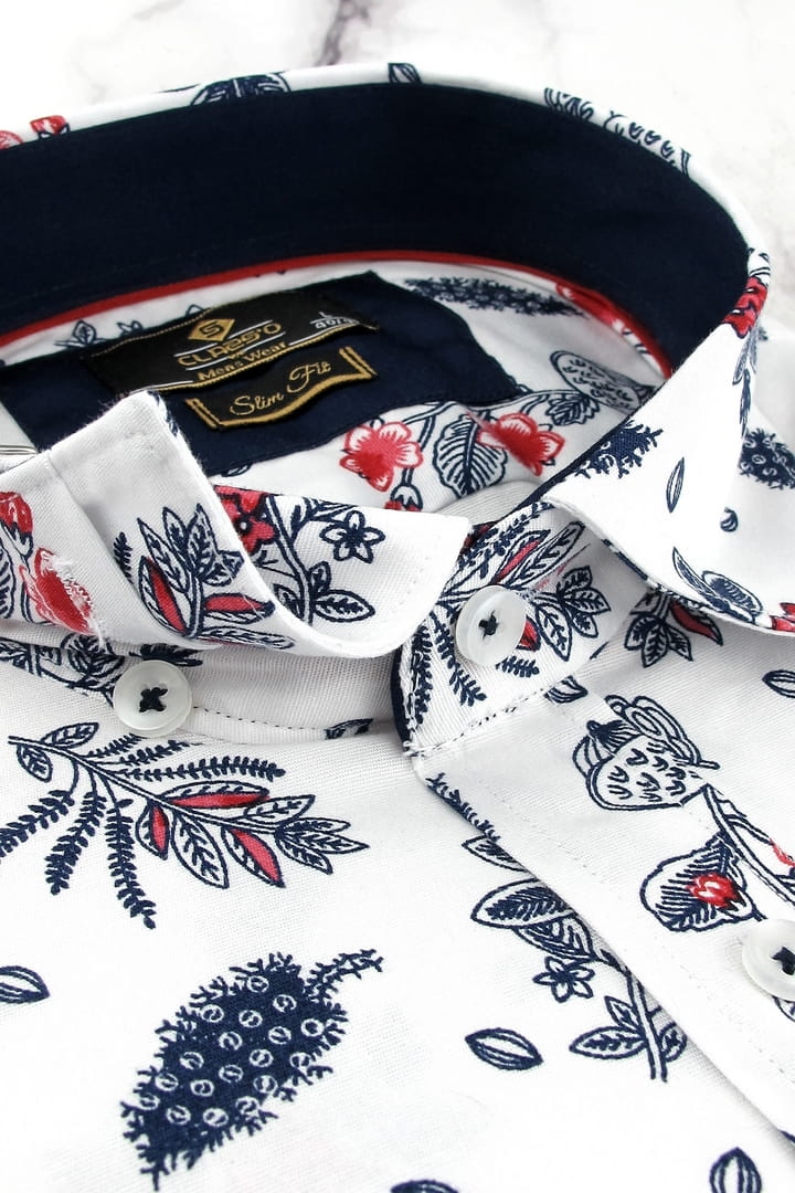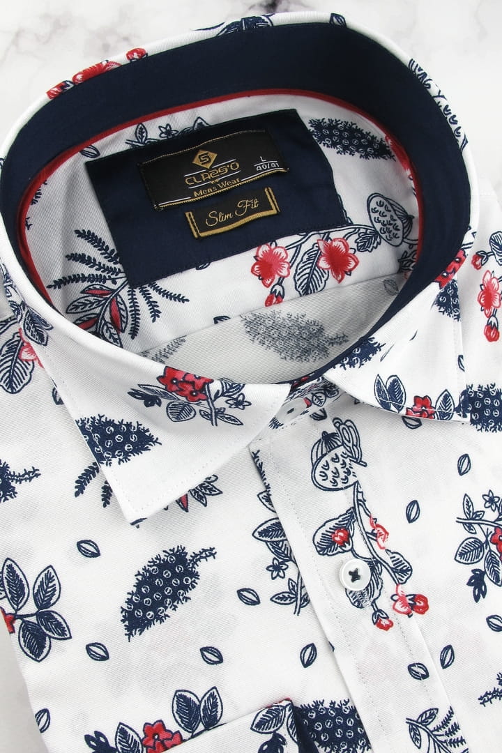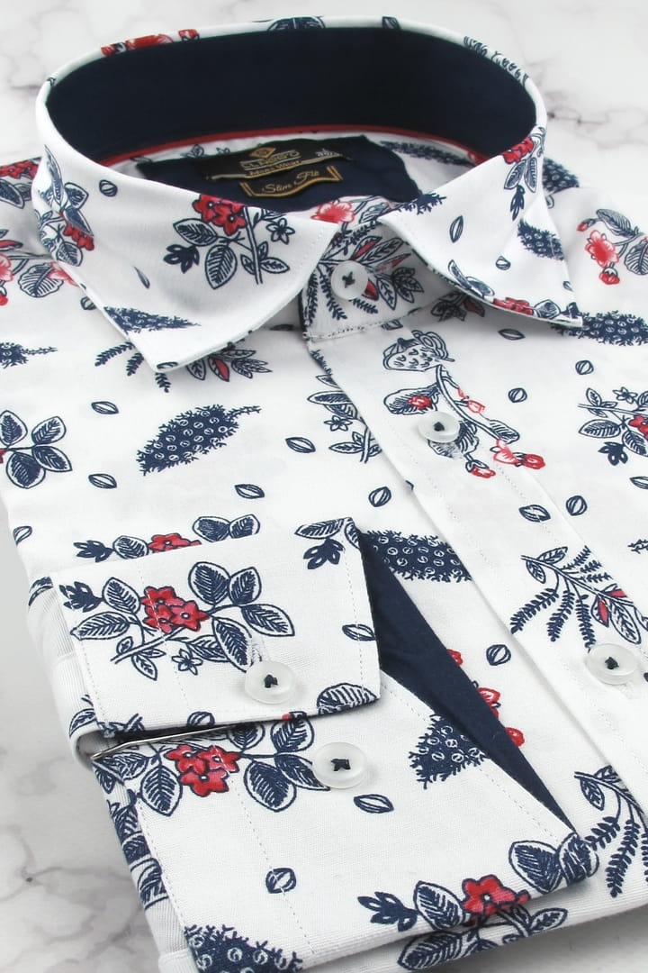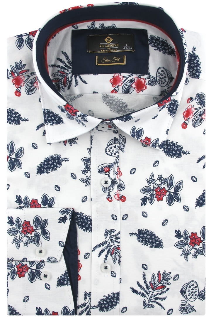 Koszula Męska Elegancka Wizytowa do garnituru biała w kwiaty z długim rękawem w kroju SLIM FIT Classo H941