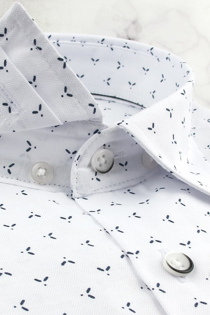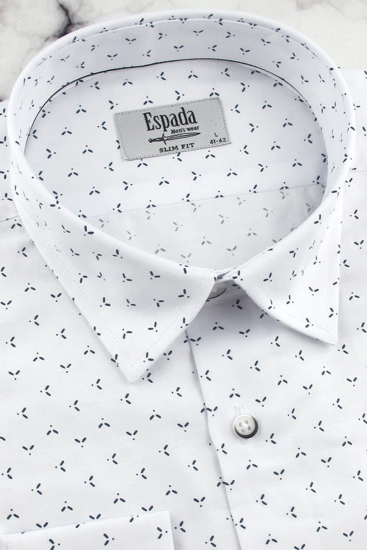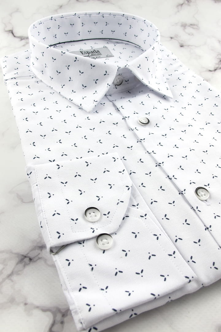 Koszula Męska Elegancka Wizytowa do garnituru biała we wzorki z długim rękawem w kroju SLIM FIT Espada Men's Wear H120