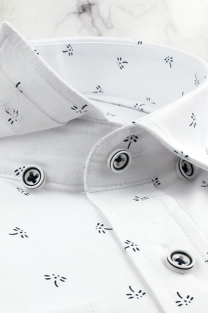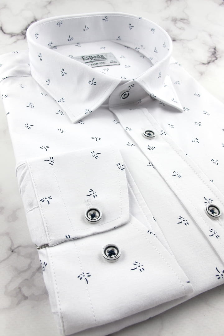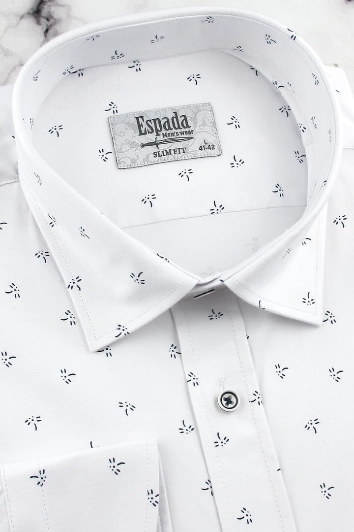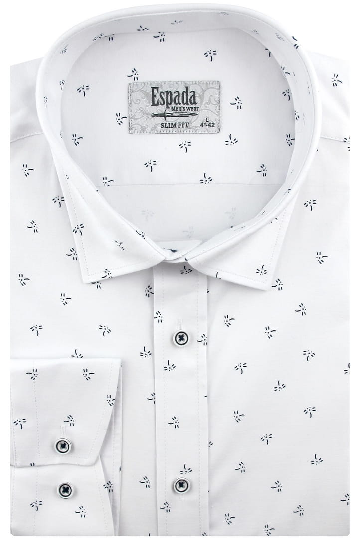 Koszula Męska Elegancka Wizytowa do garnituru biała we wzorki z długim rękawem w kroju SLIM FIT Espada Men's Wear H141