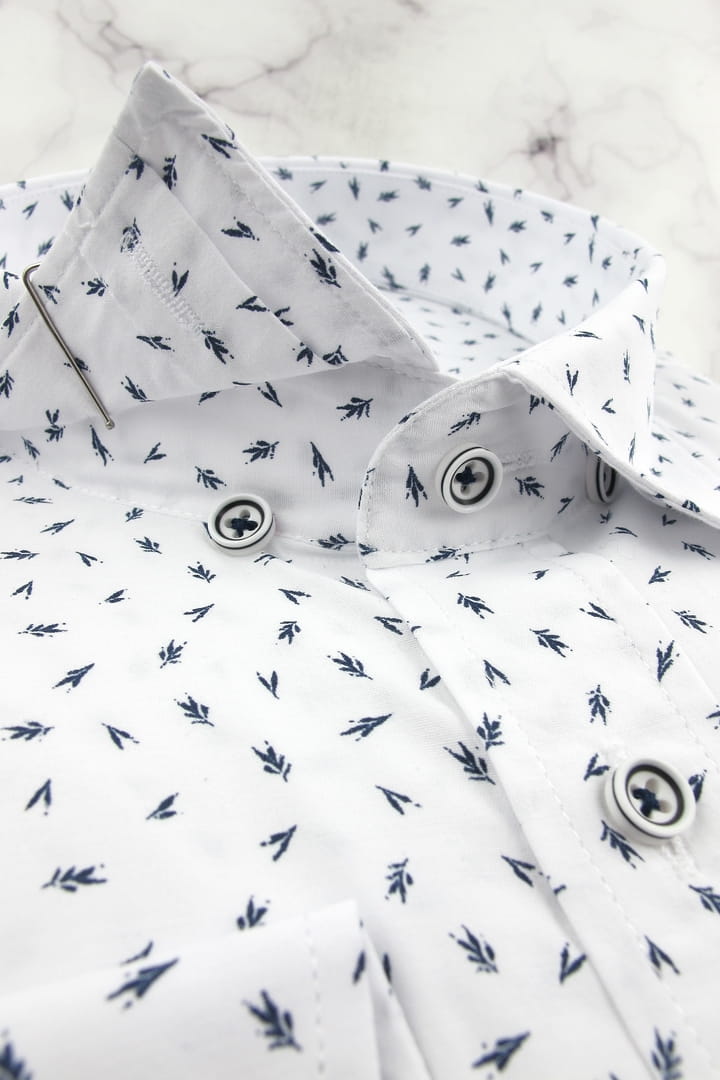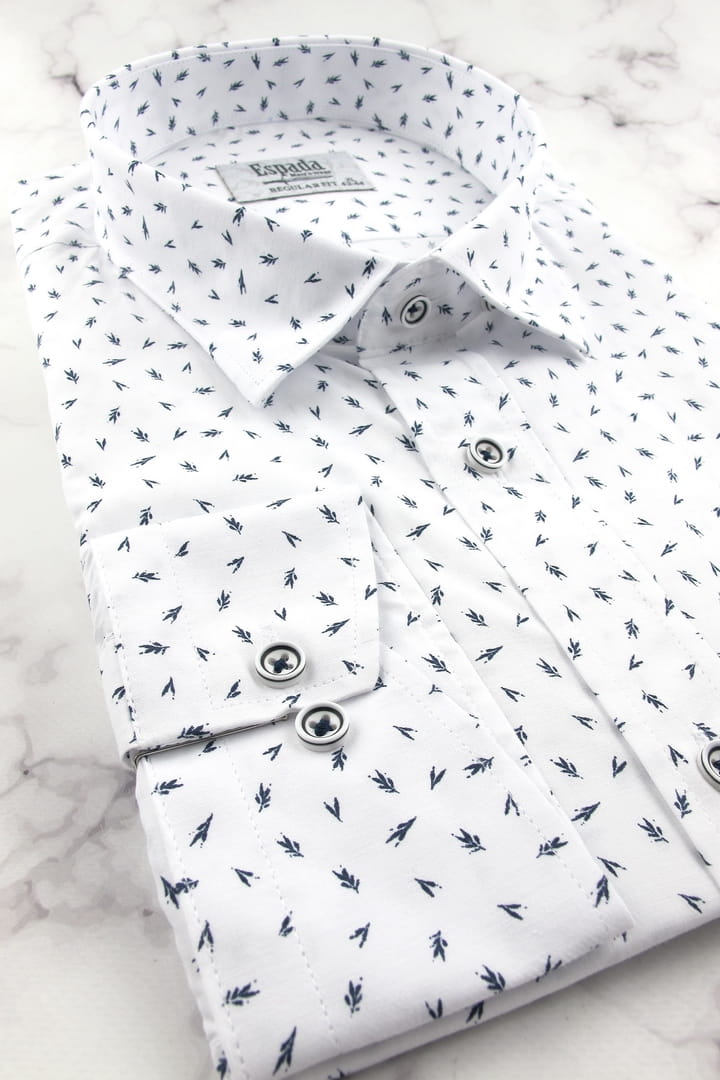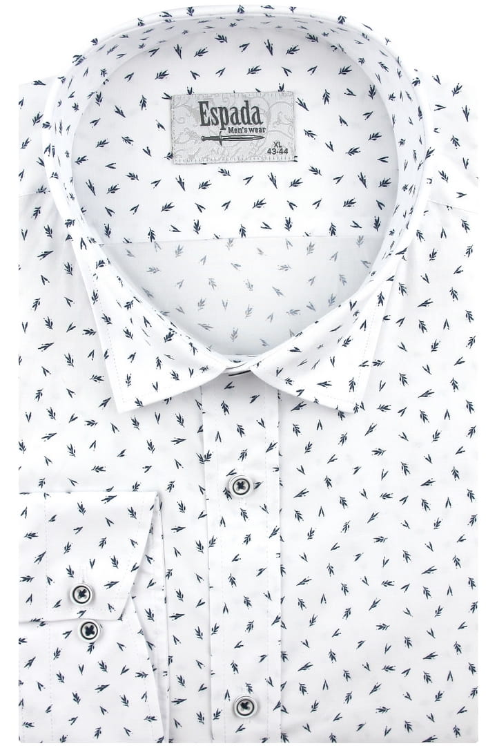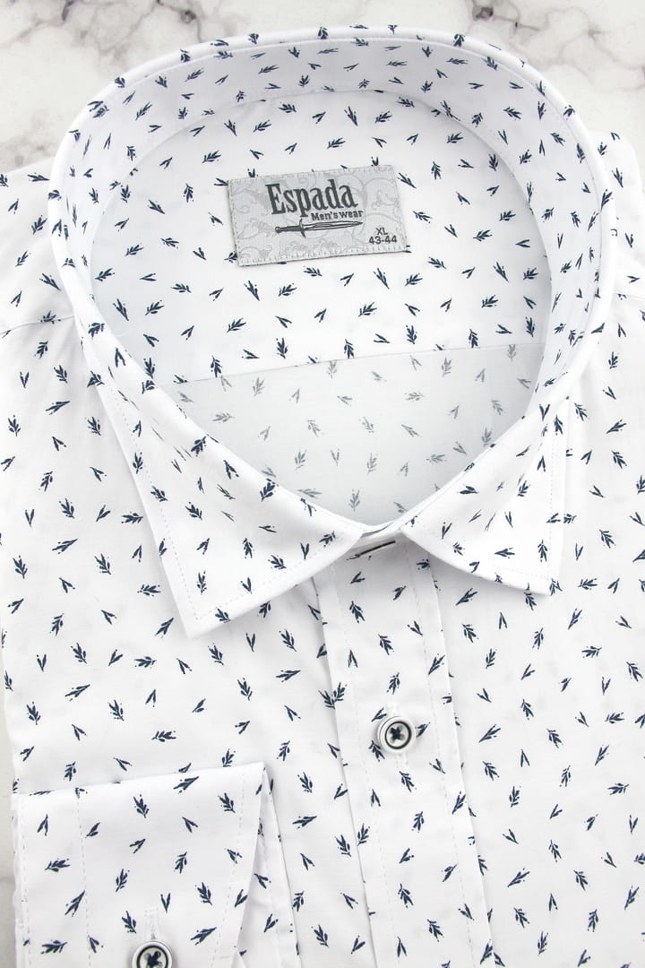 Koszula Męska Elegancka Wizytowa do garnituru biała we wzorki z długim rękawem w kroju SLIM FIT Espada Men's Wear H469