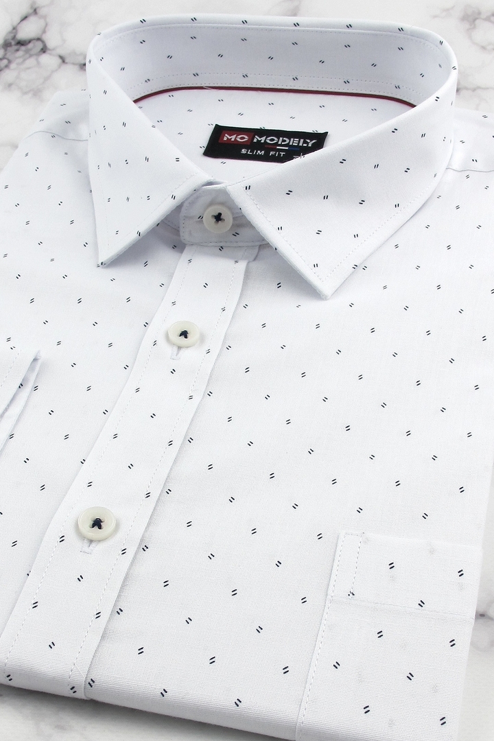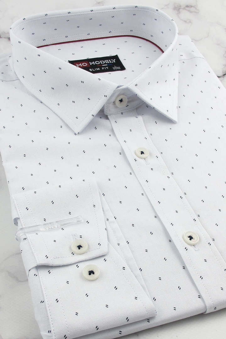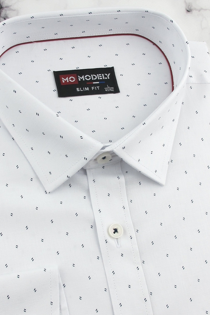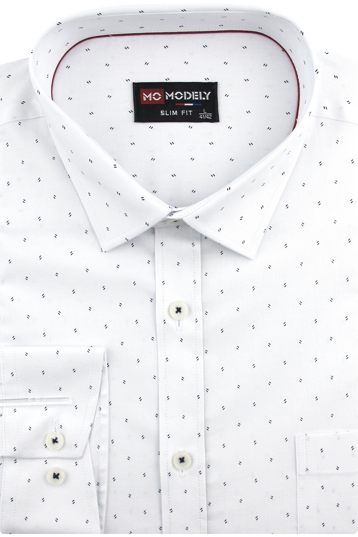 Koszula Męska Elegancka Wizytowa do garnituru biała we wzorki z długim rękawem w kroju SLIM FIT Modely J915